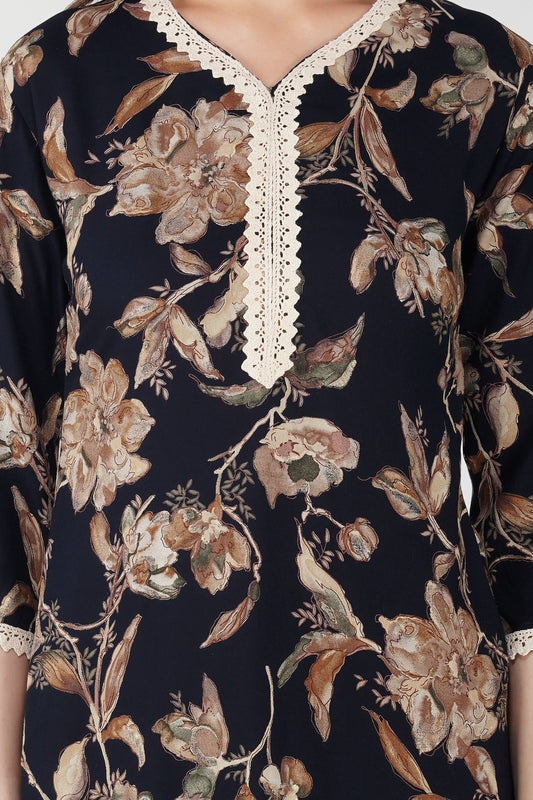 Black Foliage Co-ord Set – Leaf Print Tunic with Matching Palazzos