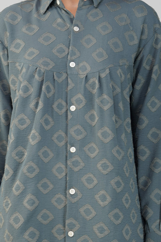 Grey Jacquard Shirt Lets Go Co-ord Set – Gathered Yoke Shirt with Relaxed Pants