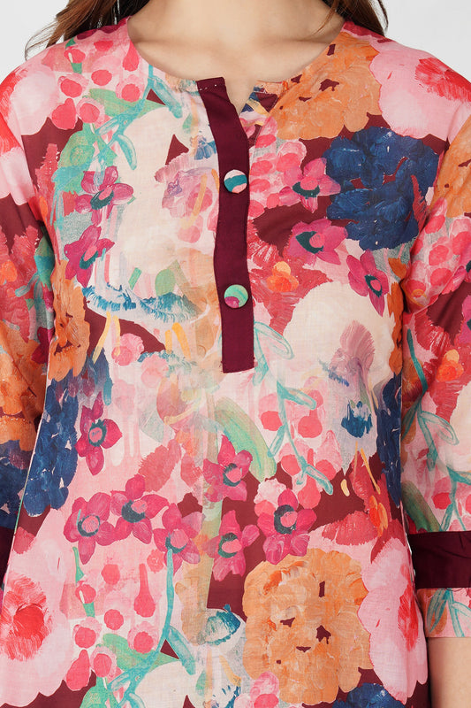 Wine Floral Shirt Co-ord Set – Bold Print Top & Relaxed Pants