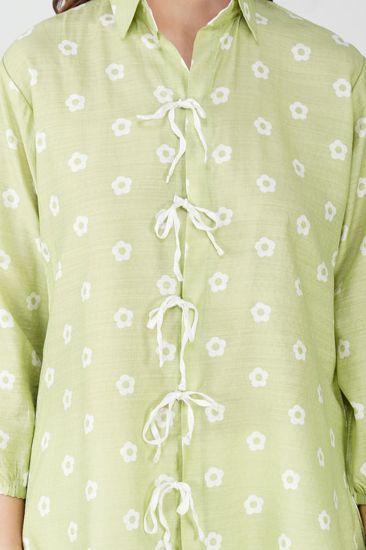 Pastel Green Tie-Up Floral Shirt Co-ord – with White Pants