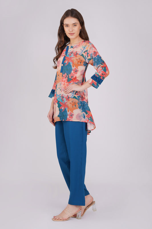 Indigo Tiered Peplum Co-ord Set – Cotton Tunic with Printed Pants