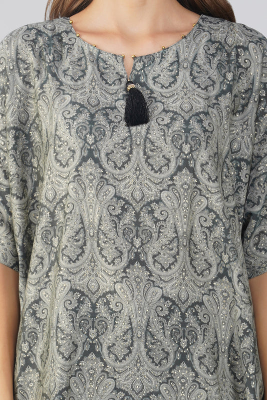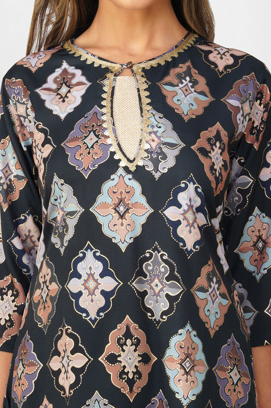 Kulfi Co-ord Set – Black Paisley Kaftan with Pearl Detail & Solid Pants (2-Piece Set)