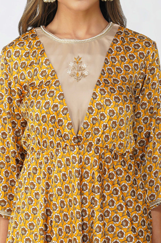 Swarovski Mustard Stone Embellsihed Printed Tunic with Pant Co-ords