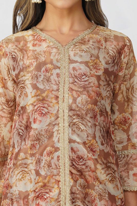Rani Floral Printed Co-ord Set – Flared Kurta with Lace & Printed Pants