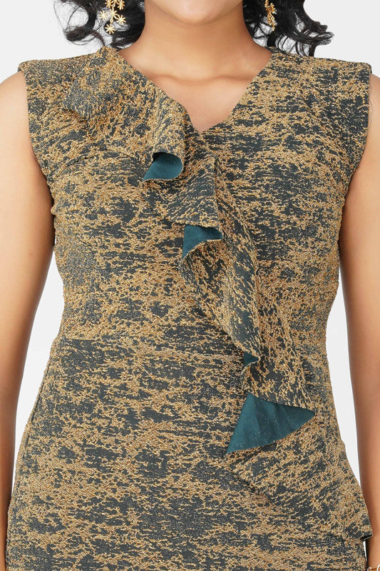 Metallic Ruffle Body-con Dress Black Gold