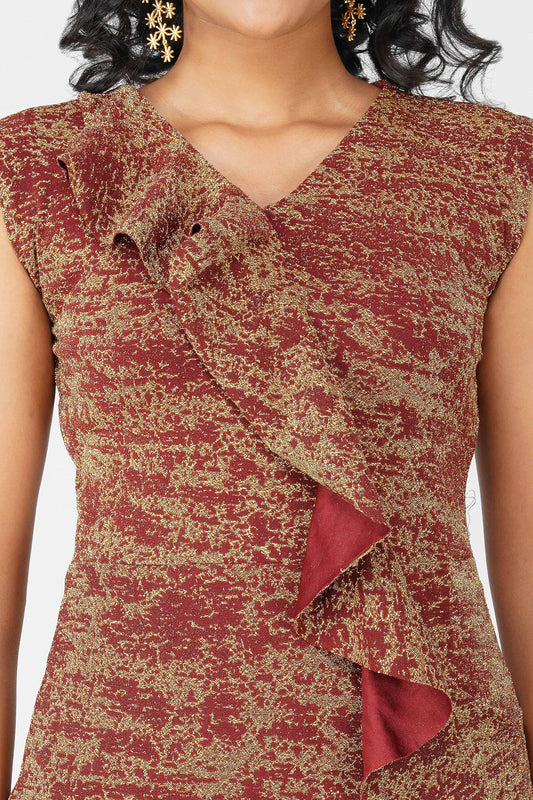 Metallic Ruffle Body-con Dress Maroon