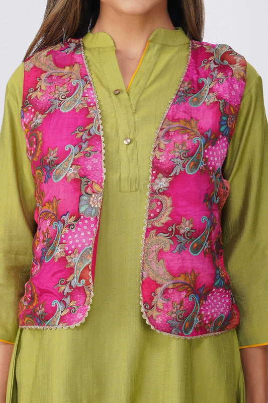 Banarasi Ethnic Jacket in Rani Pink with Gold Lace