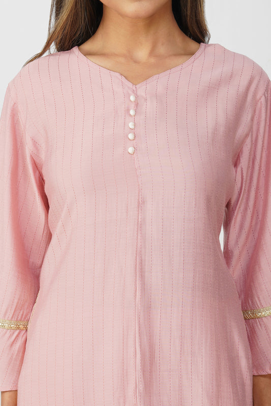 Taara Stripes Gold Lace Coord Set – Rose Pink