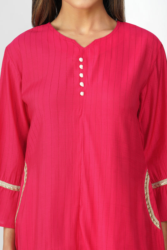 Taara Stripes Gold Lace Coord Set – Rani Pink