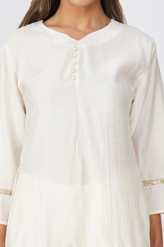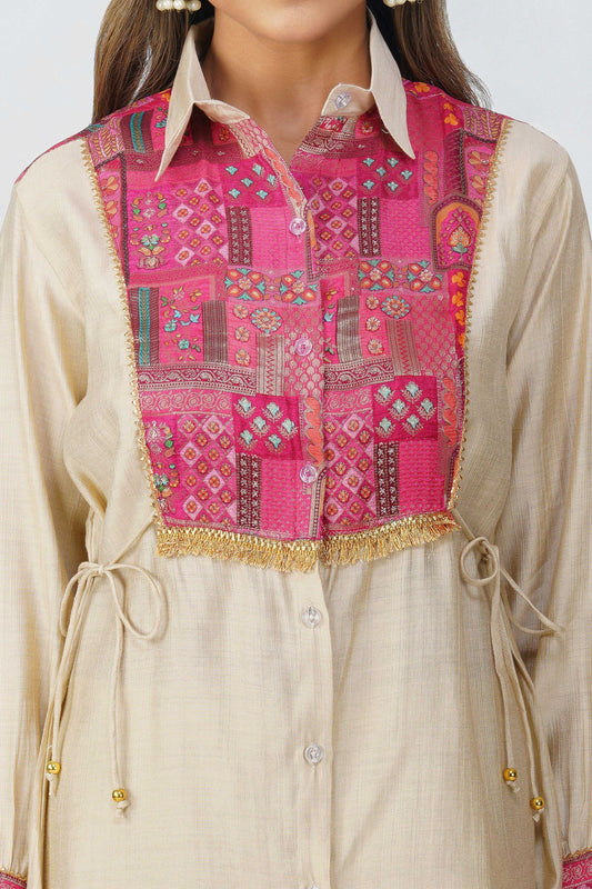 Suhani Ivory Shimmer Shirt & Pants Coord Set with Handwork Yoke | Bindigasm