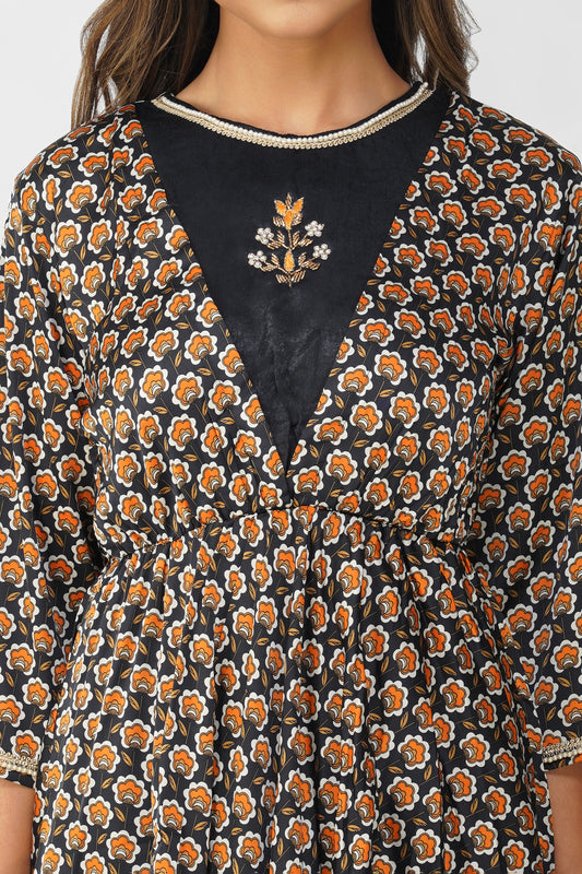 Kulfi Co-ord Set – Black Paisley Kaftan with Pearl Detail & Solid Pants (2-Piece Set)