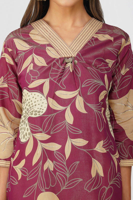 Maya Shiny Silk Coord Set – Maroon Gold Flora
