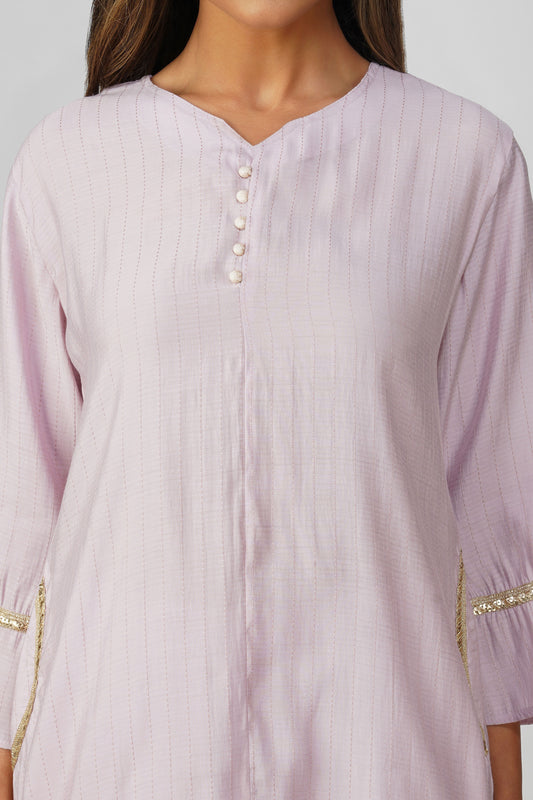 Marbling Co-ord Set – Lavender Marbling Print with Handwork Latkan