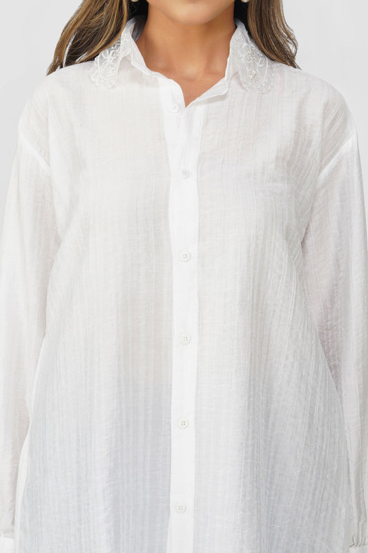 Baawri Ivory Chanderi Printed Shirt with Handmade Tassel Detail | Bindigasm