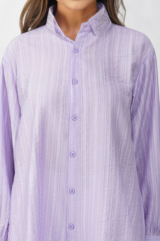 Baawri Purple Chanderi Printed Shirt with Handmade Tassel Detail | Bindigasm