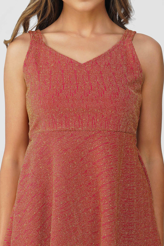 Fiesta Gold Shimmer Peplum Top – Rani Pink Lurex Sleeveless