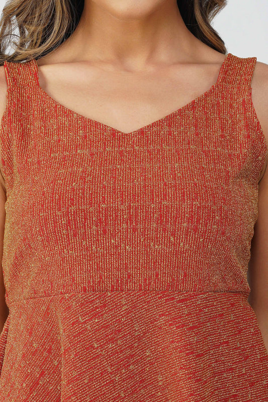 Fiesta Gold Shimmer Peplum Top – Red Lurex Sleeveless