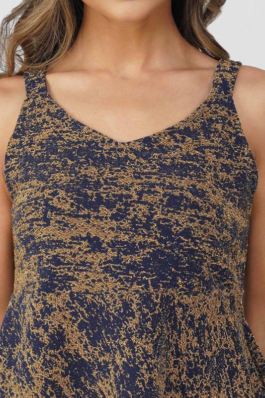 Fiesta Glow Peplum Top – Navy Gold Lurex Sleeveless Partywear