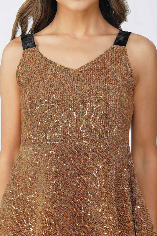 Golden Hour Sequin Pleated Peplum Top – Gold with Black Velvet Straps