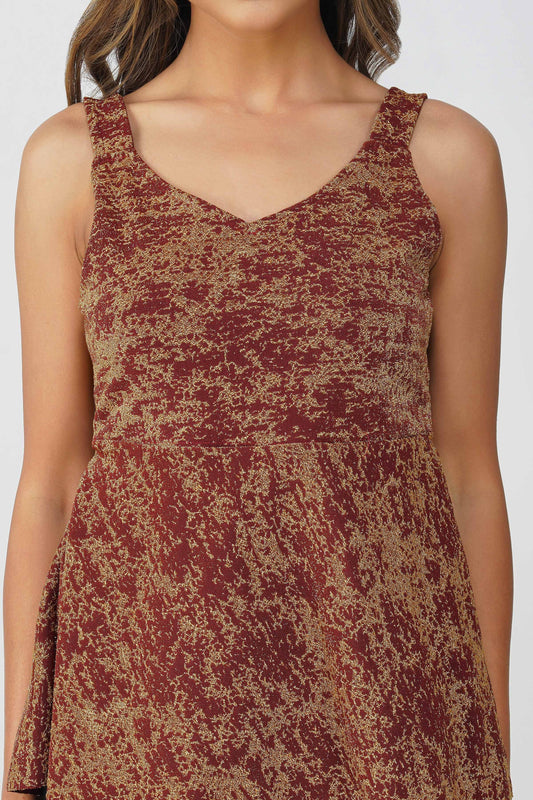 Fiesta Gold Shimmer Peplum Top – Wine Lurex Sleeveless