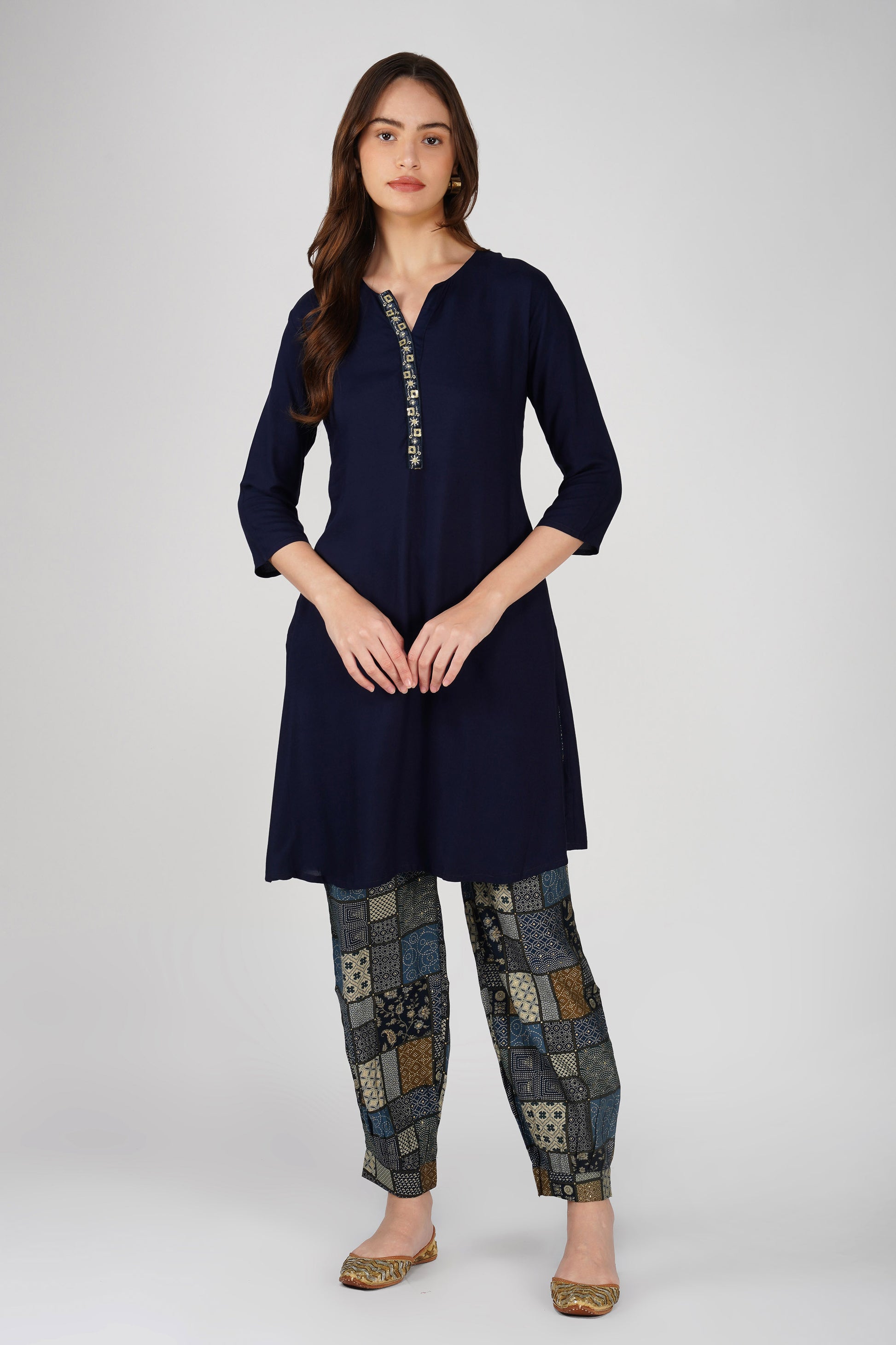 Crafted for the ones who like to keep it classy yet rooted, the Afreen Set in Navy 💙 blends Indian heritage with easy-going charm. With Afghani-style printed dhoti pants, a sleeveless printed vest detailed with sequin edging, and a solid navy kurta — it’s the kind of set you’ll reach for again and again.