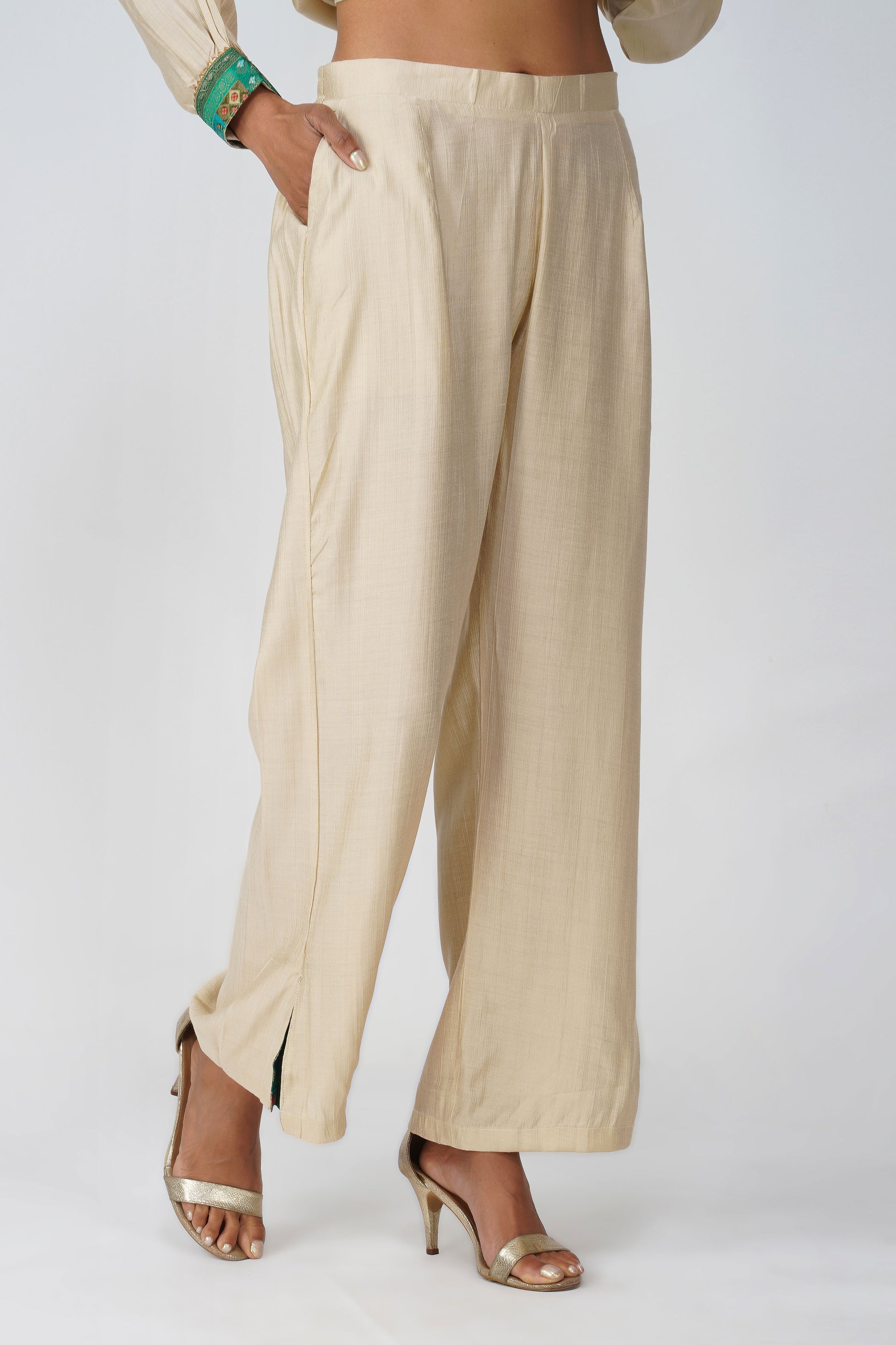 Fabric: Silk blend shirt and palazzo with Banarasi Dola Silk yoke, cuffs & hem detailing 🪡