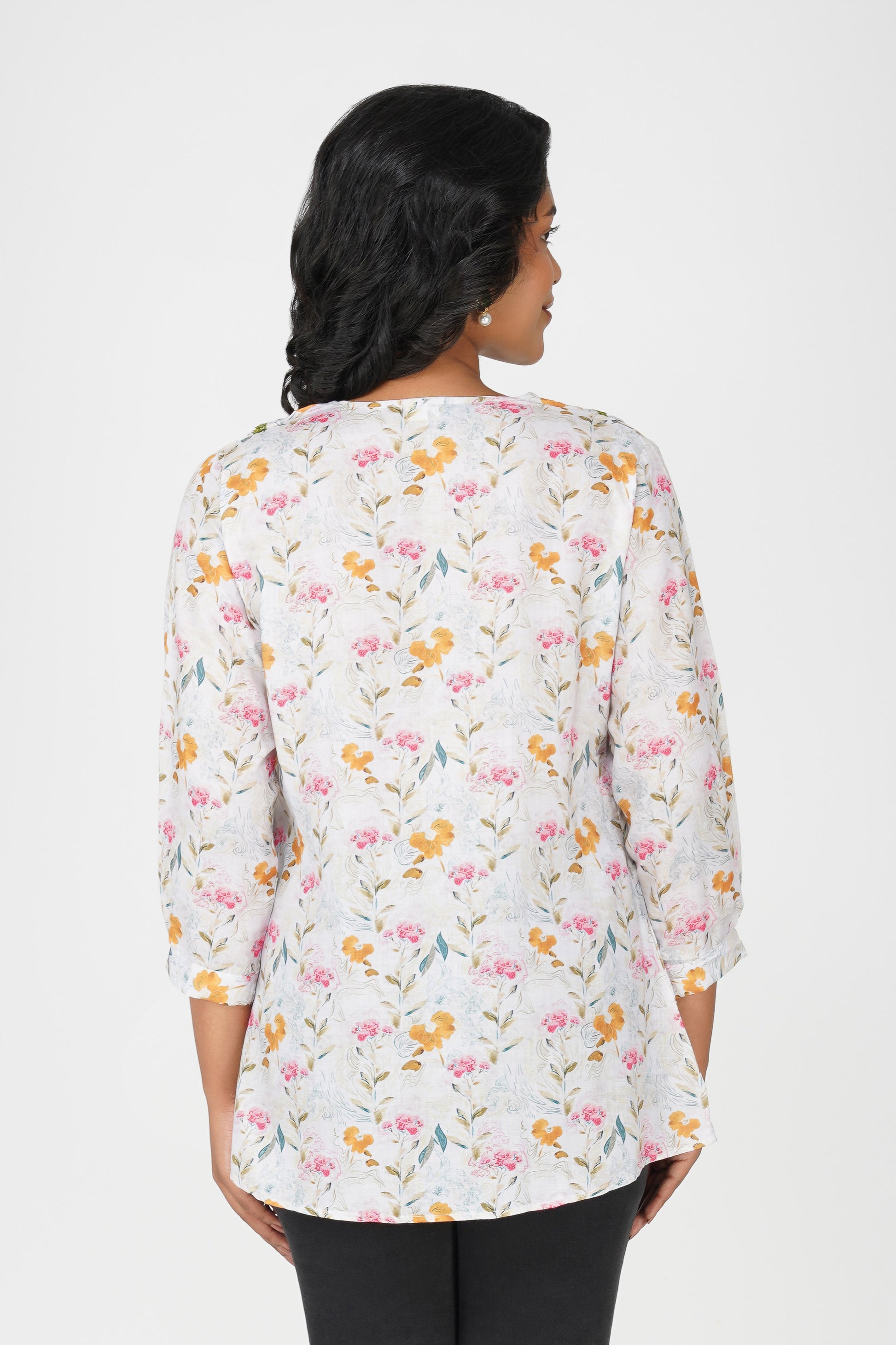 Blush Bib Collar Cotton Shirt – Grey Floral Print