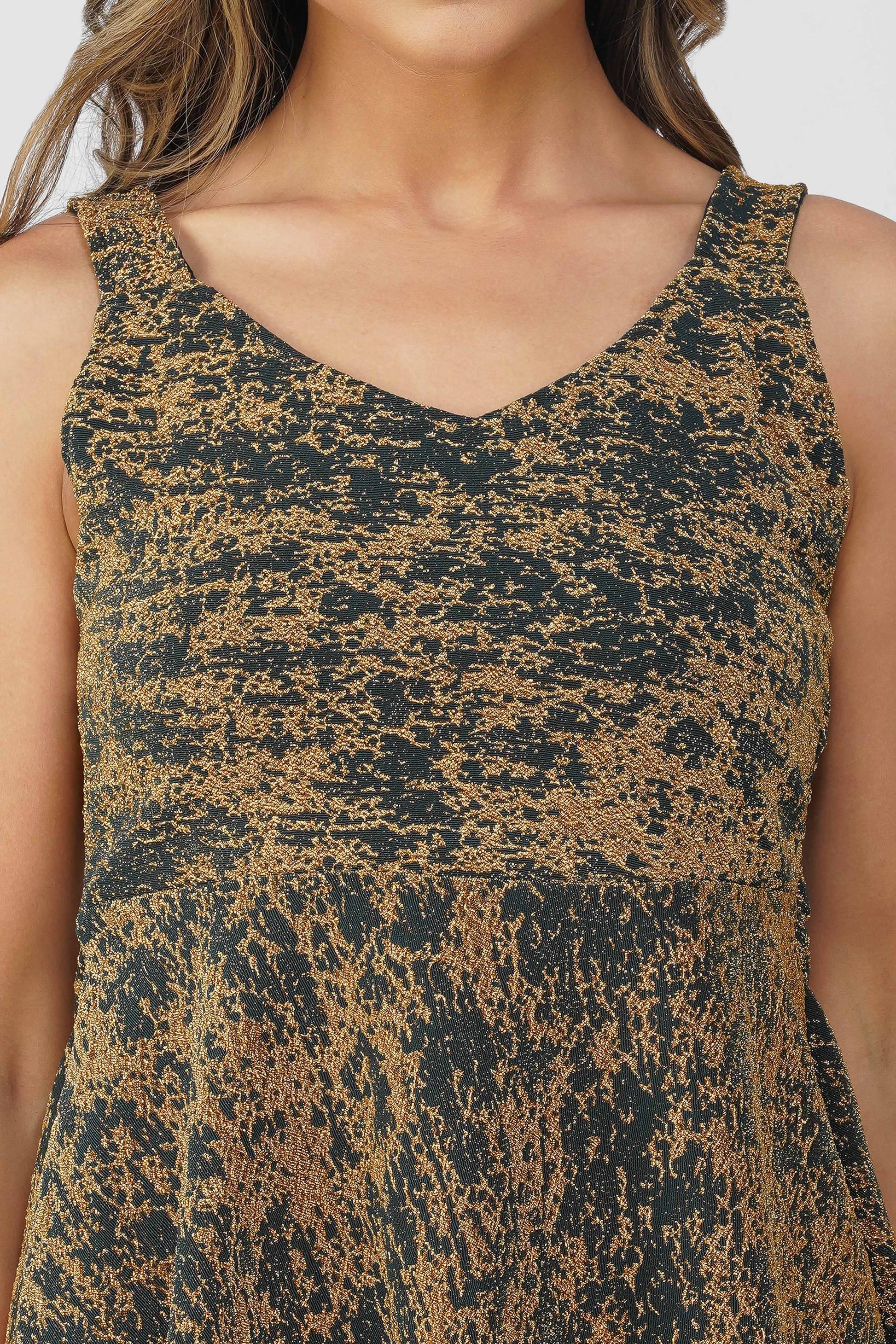 Fiesta Glow Peplum Top – Peacock Green Gold Textured Sleeveless Blouse