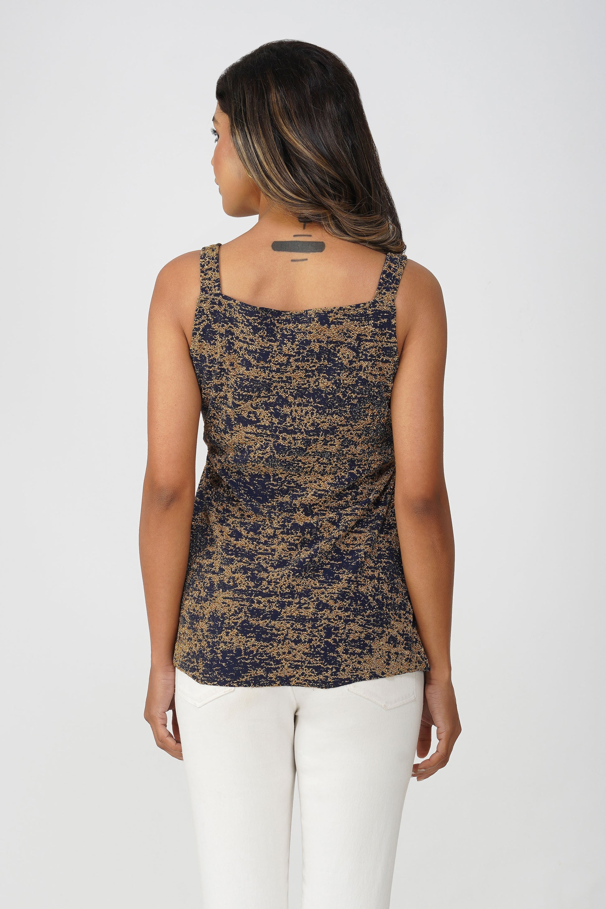 Fiesta Glow Peplum Top – Navy Gold Lurex Sleeveless Partywear