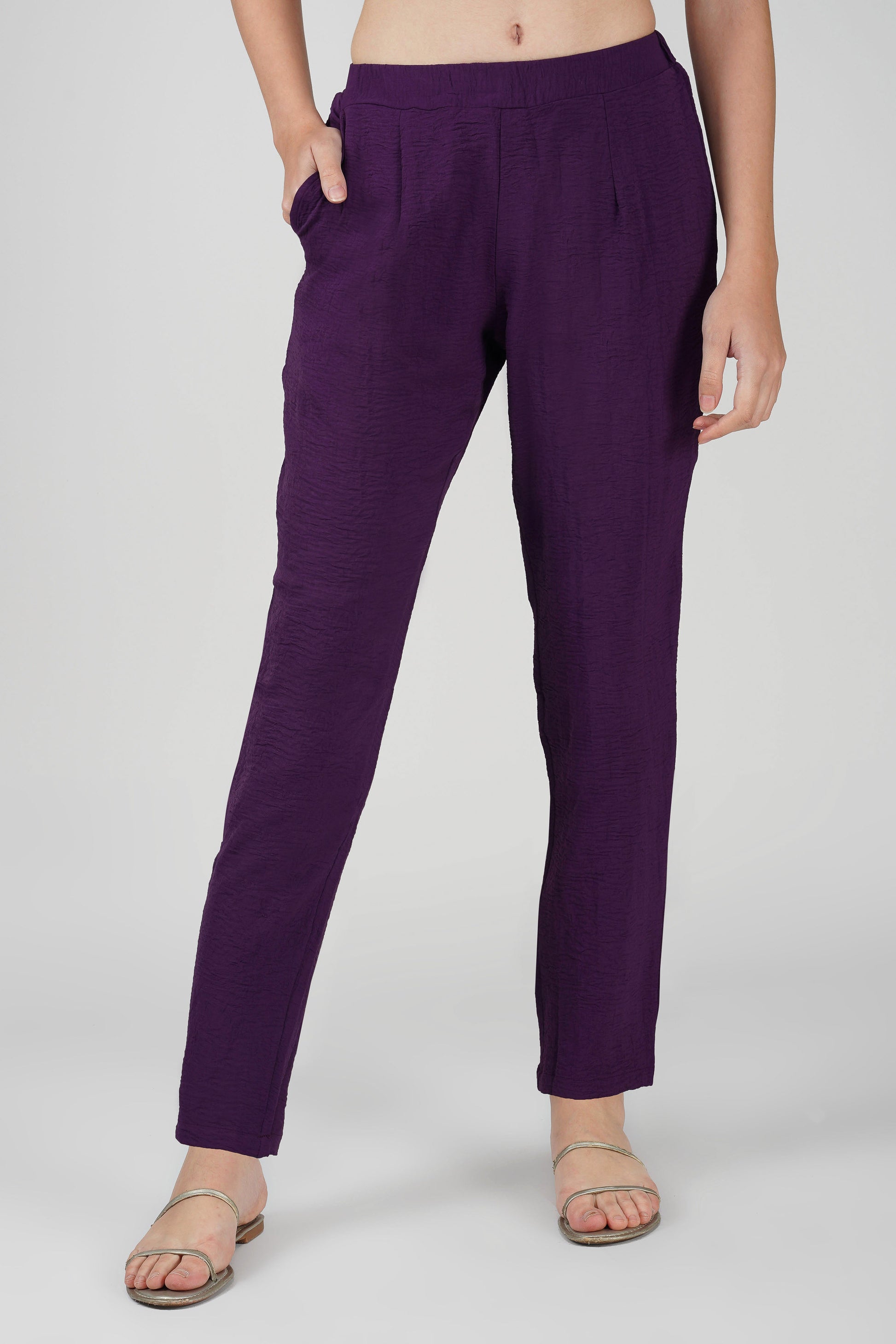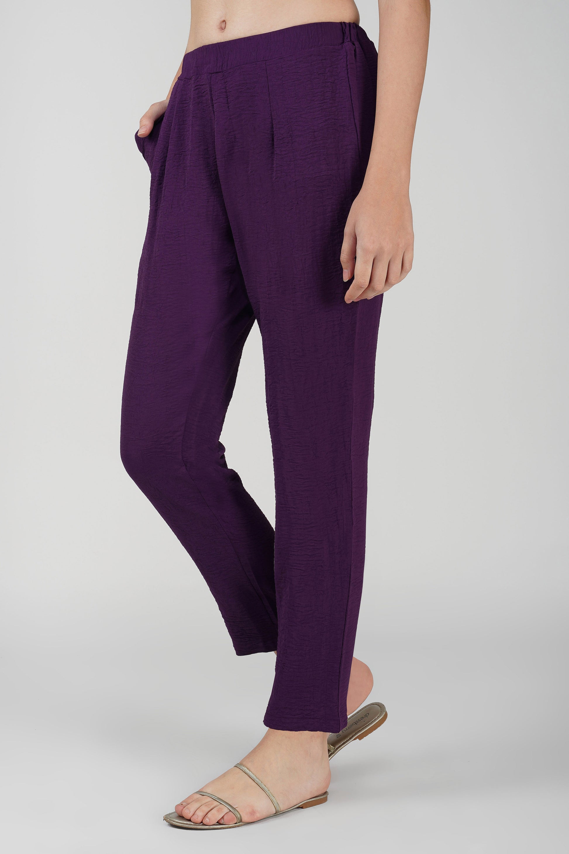 GoGo Pants – Dark Purple Soft Crush Trousers with Pocket