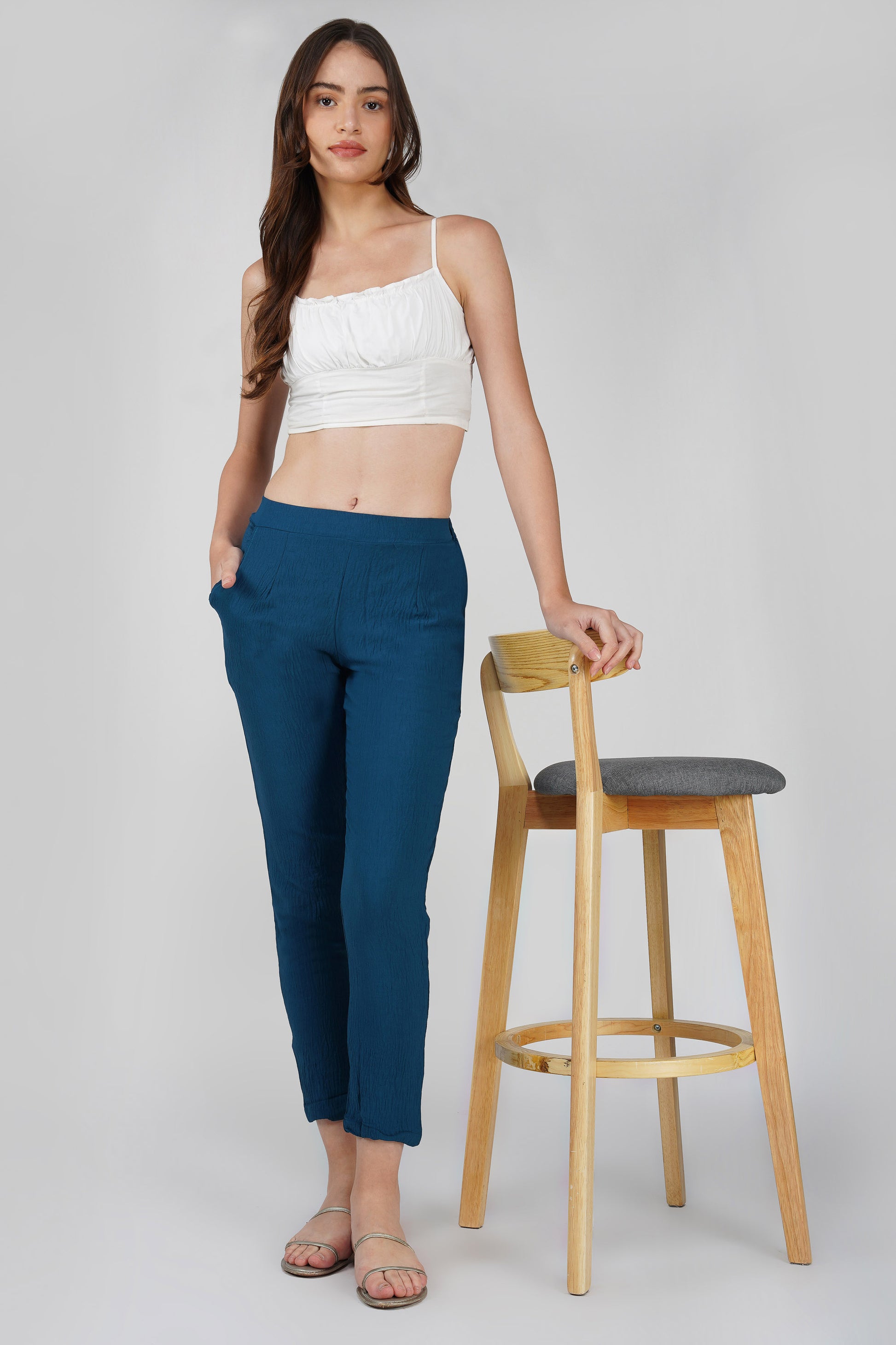 GoGo Pants – Prussian Blue Crush Trousers with Pocket