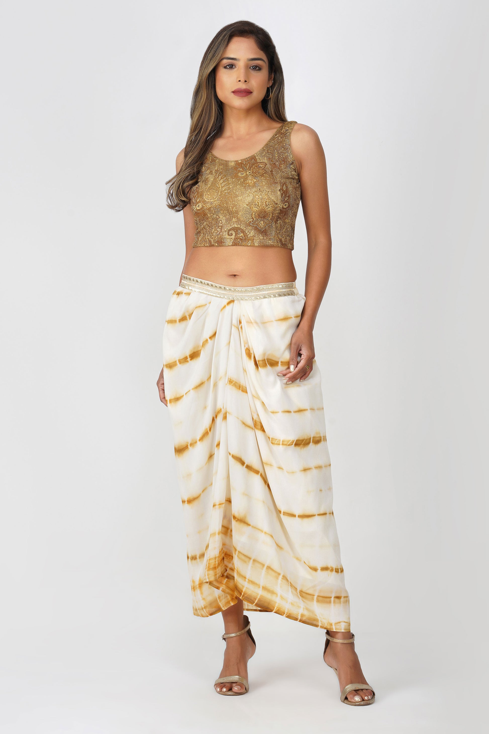 Haldi Haze Shibori Drape Skirt Set | Bindigasm