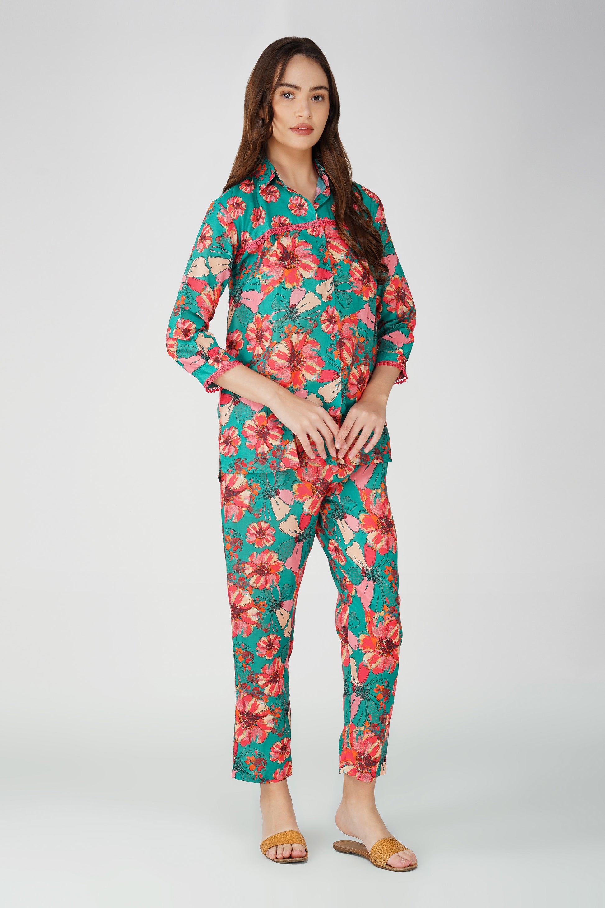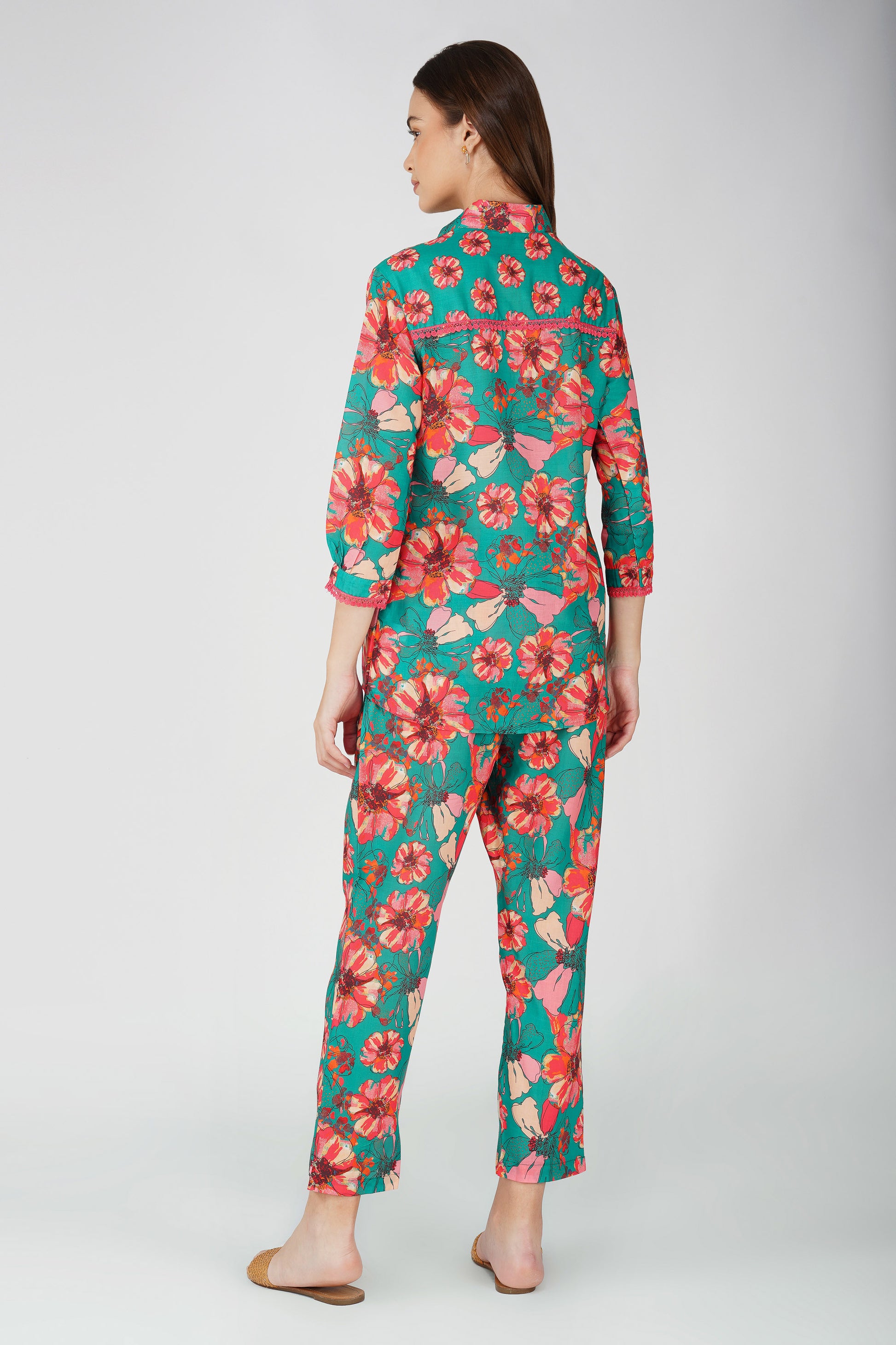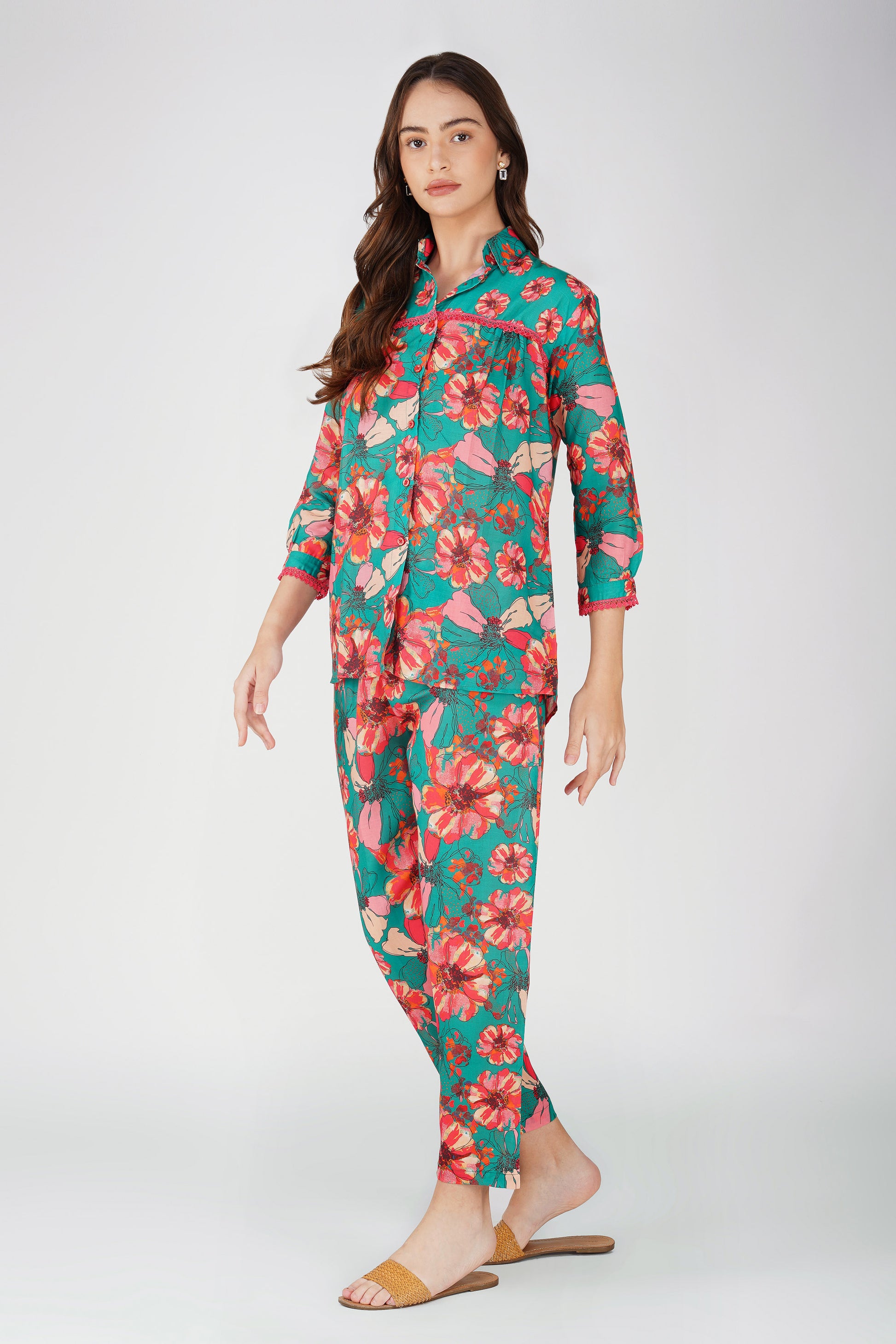 Green Floral Shirt Co-ord Set – Bold Print Top & Relaxed Pants