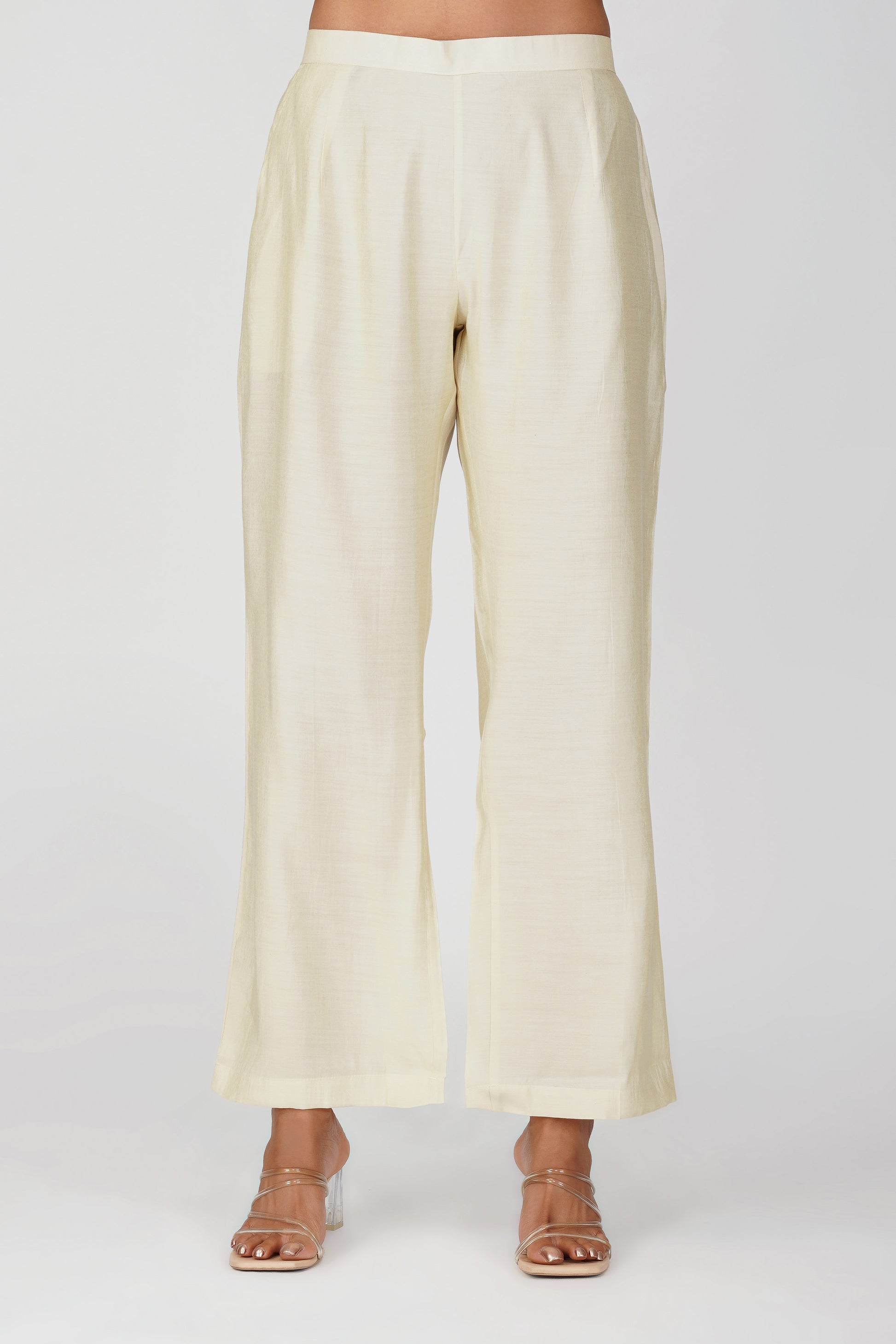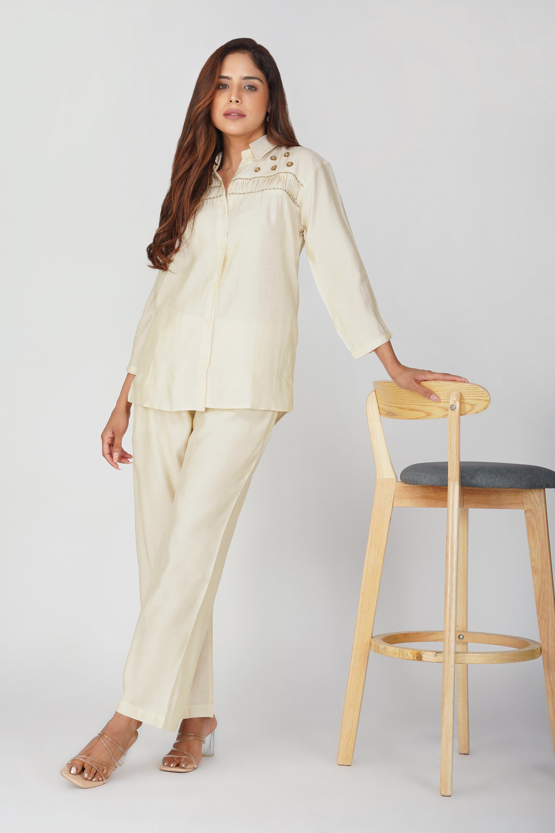 Suhani Ivory Shimmer Shirt & Pants Coord Set with Handwork Yoke | Bindigasm