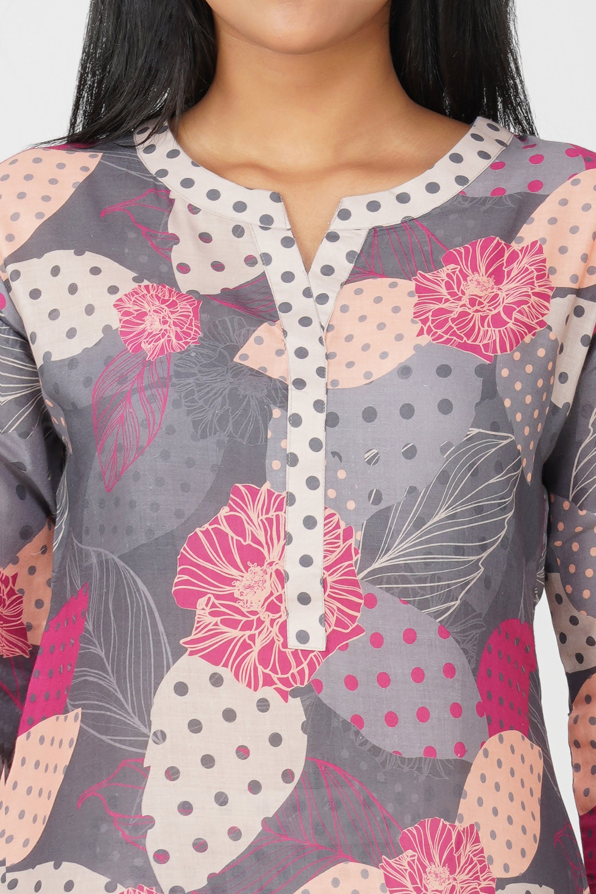 Colour – Top: Grey | Bottom: Cream with Grey Polka Dots