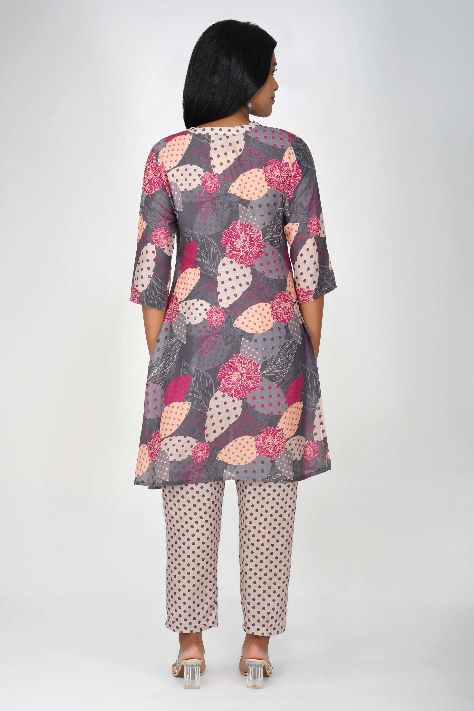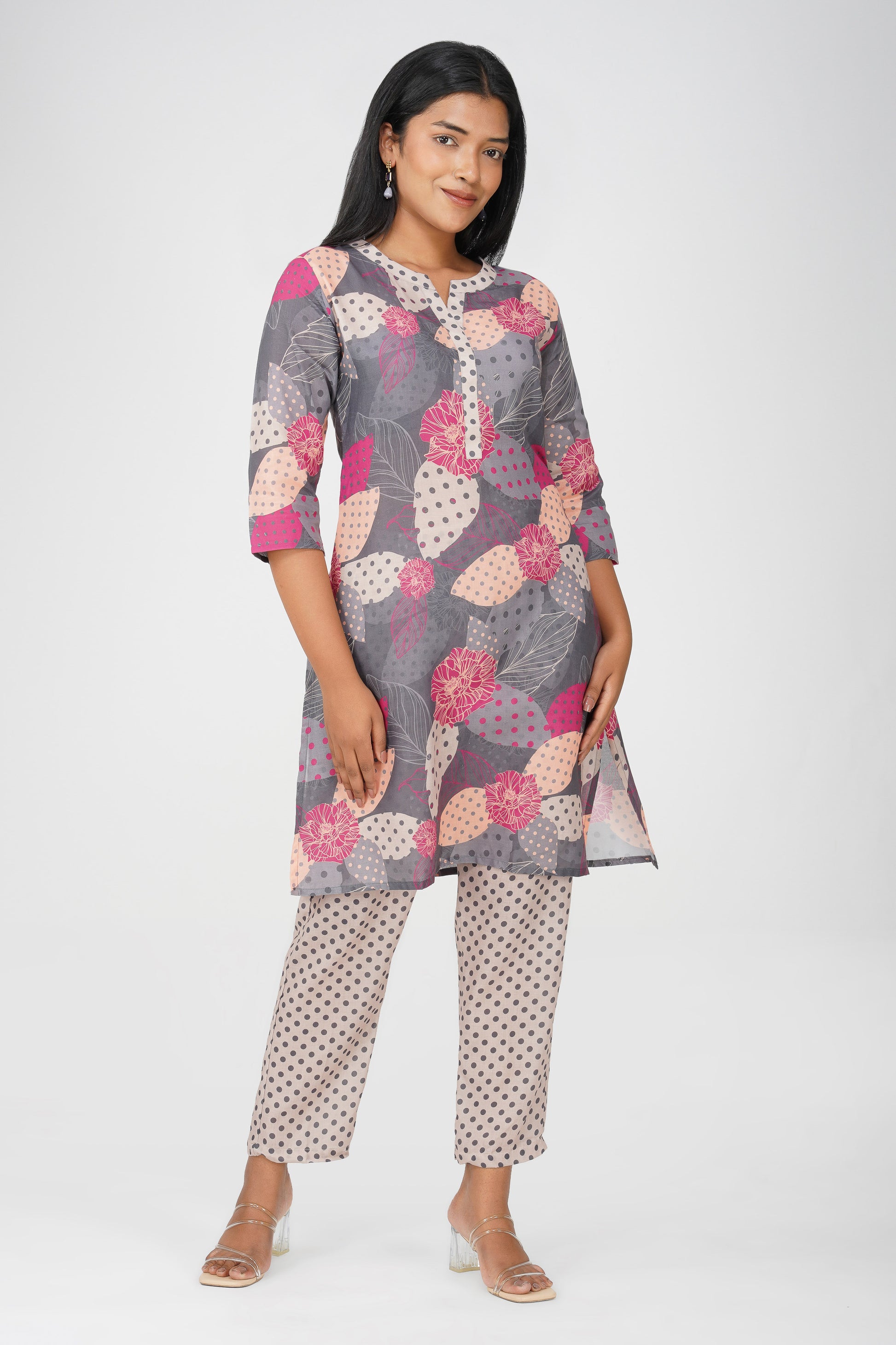 Level up your everyday kurta game with this playful grey co-ord set — featuring a quirky illustration on the kurta paired with contrast polka dot bottoms 🎨. Finished with a pocket and tailored for comfort, it’s perfect for days when you want to keep it easy yet expressive.