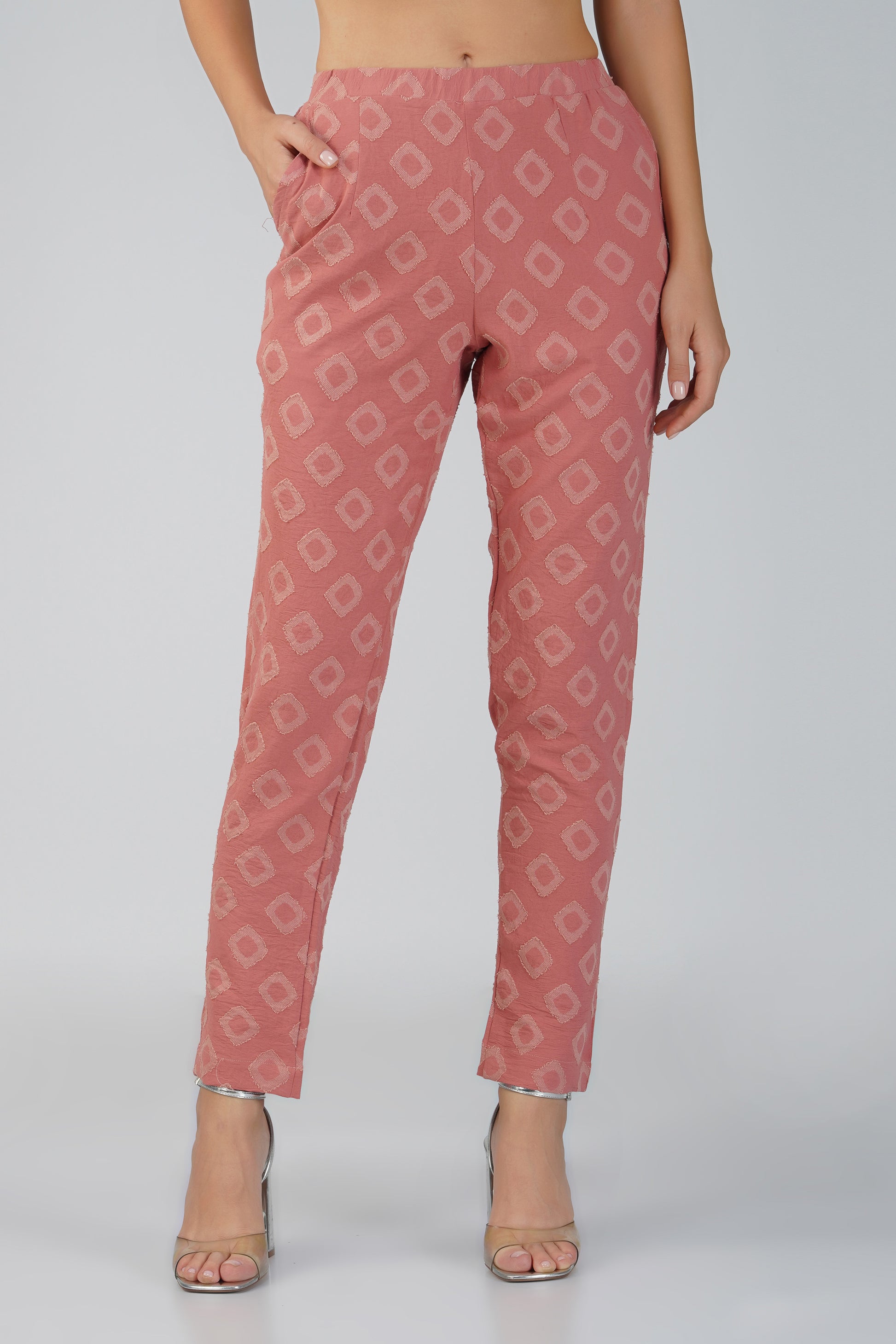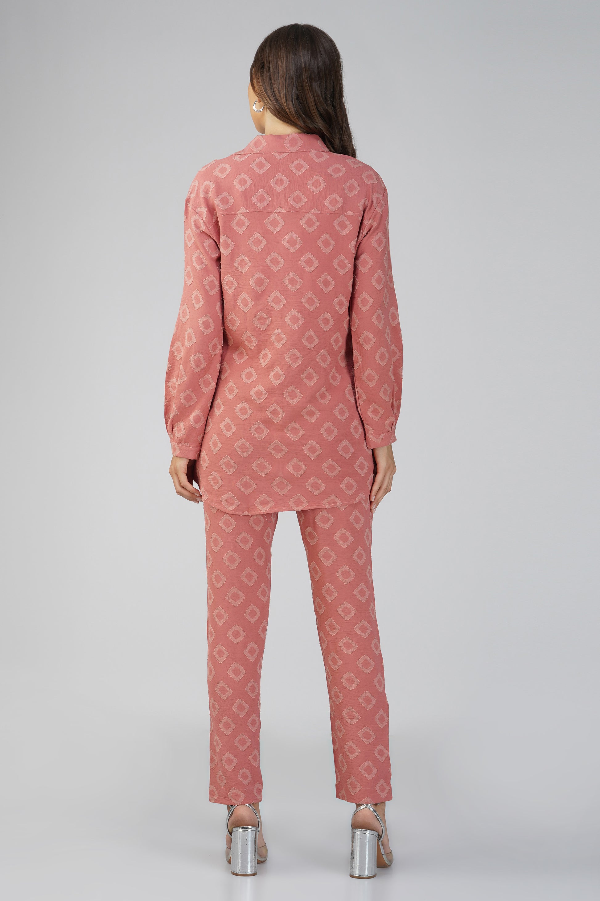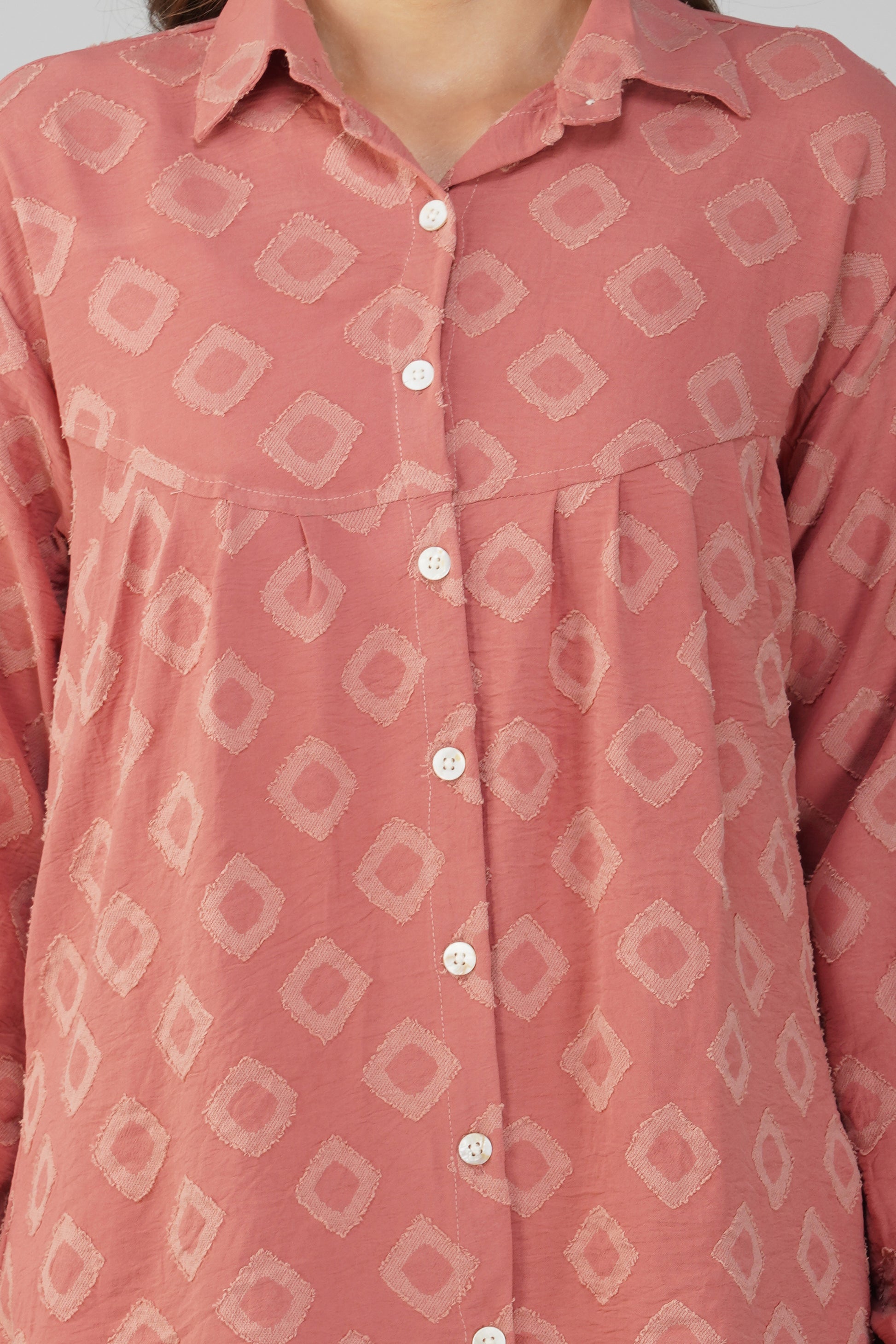 Peach Jacquard Shirt Lets Go Co-ord Set – Gathered Yoke Shirt with Relaxed Pants