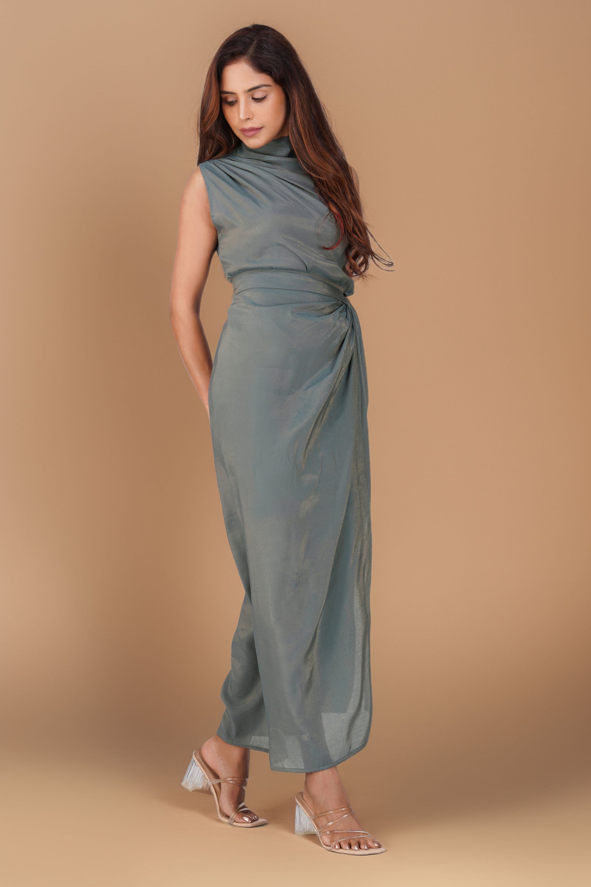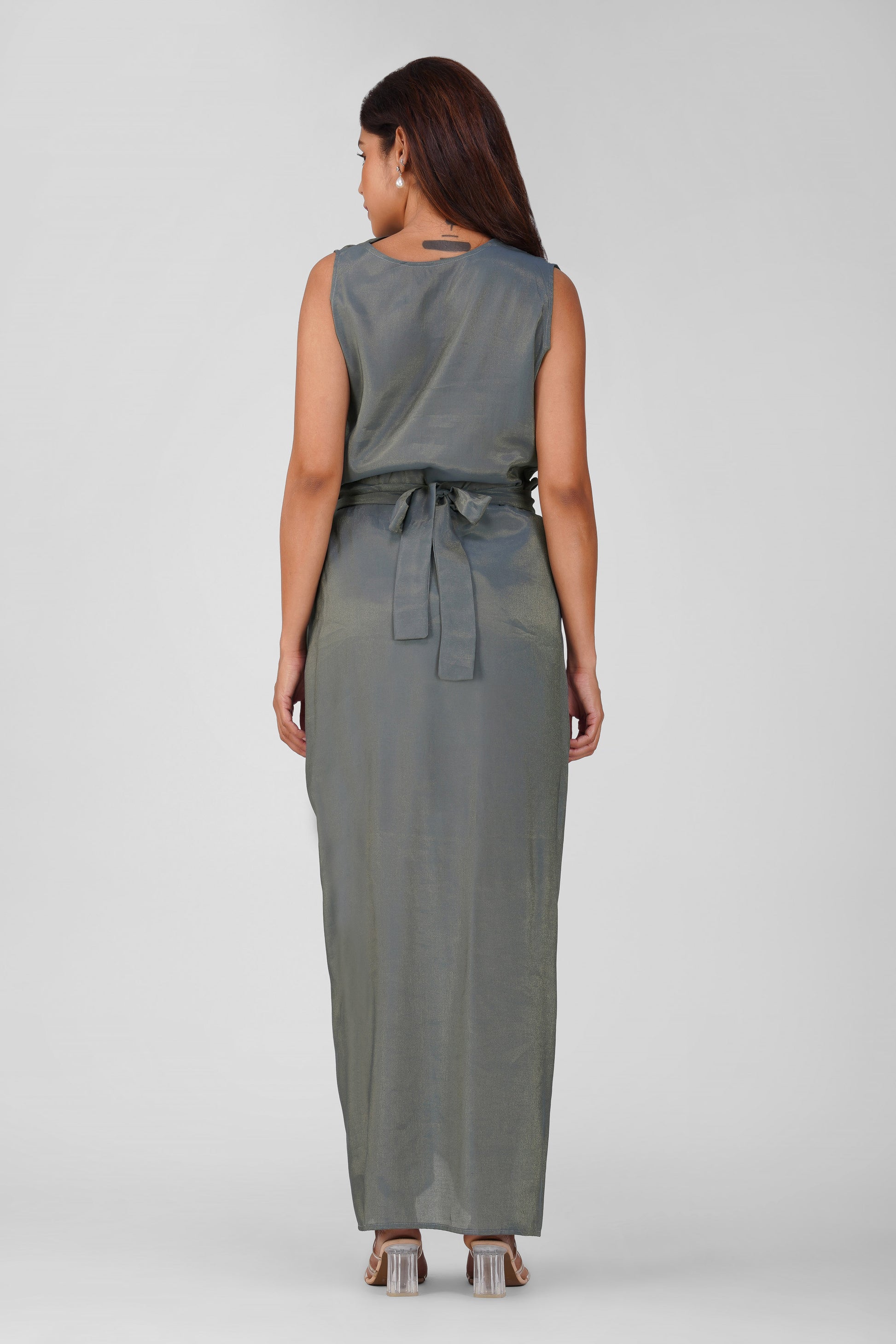 Malaika Shimmering Cowl Drape Coord Set – Charcoal Gray | Bindigasm