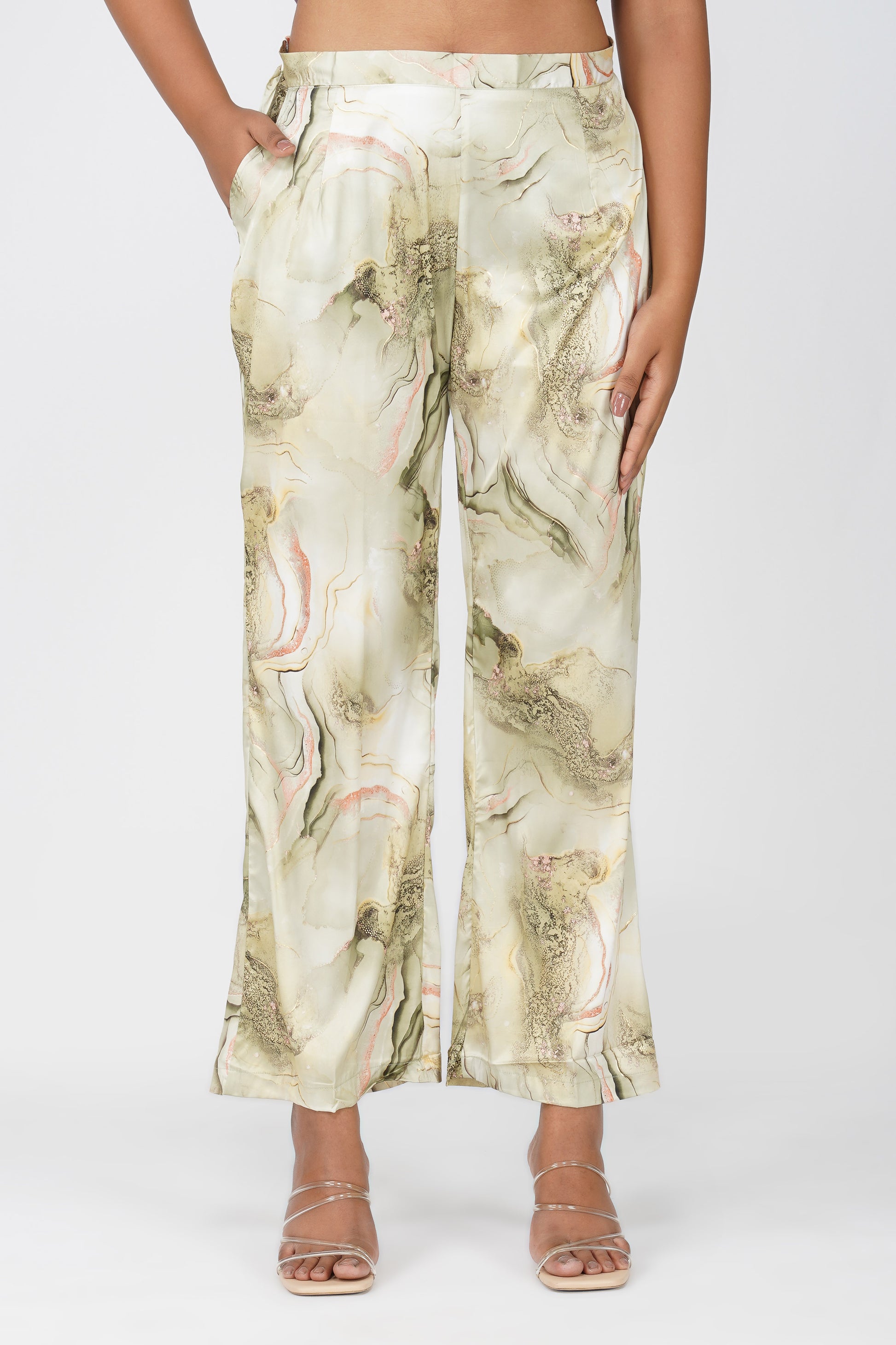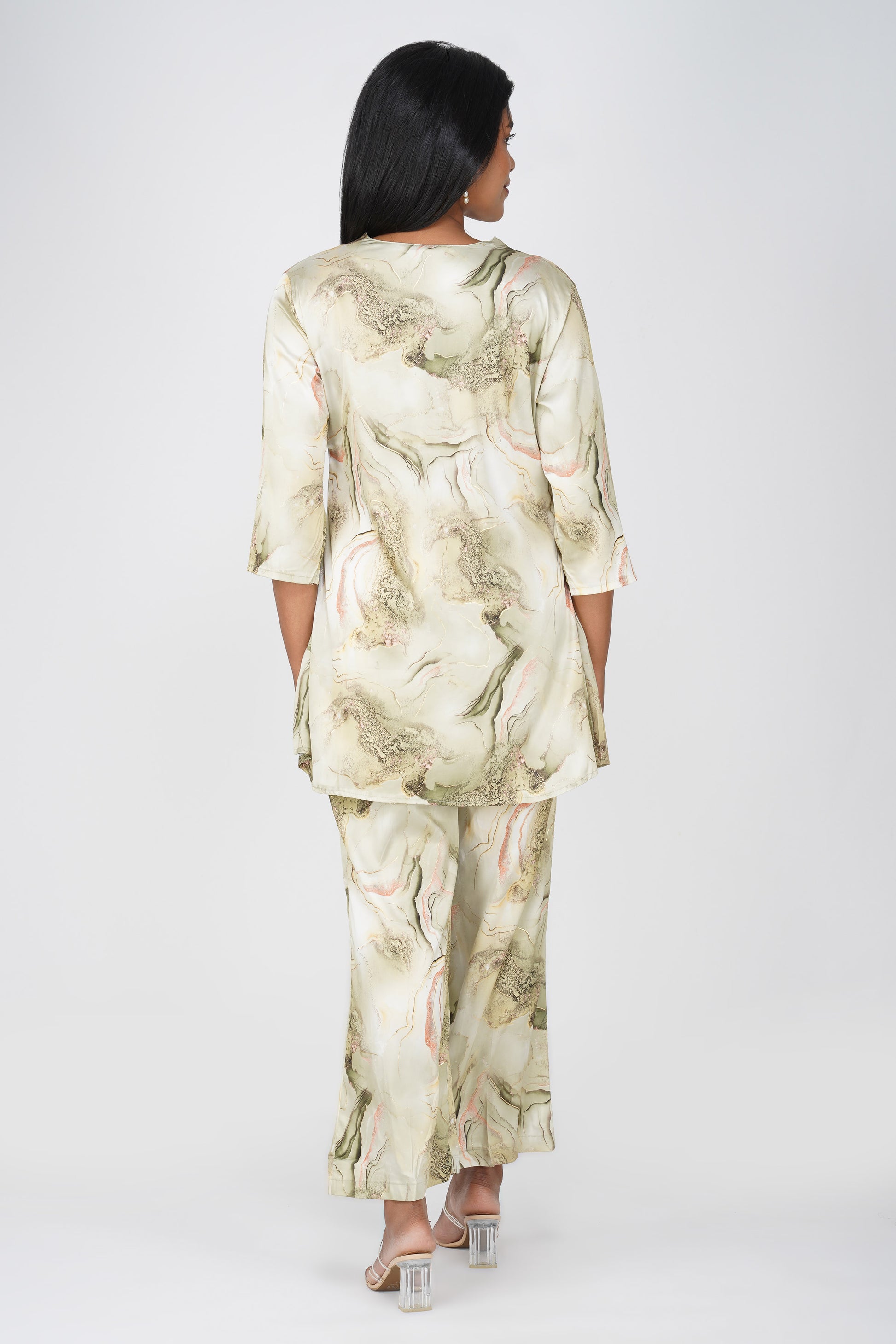 Marbling Co-ord Set โ Green Marbling Print with Gold Highlights & Latkan Detail
