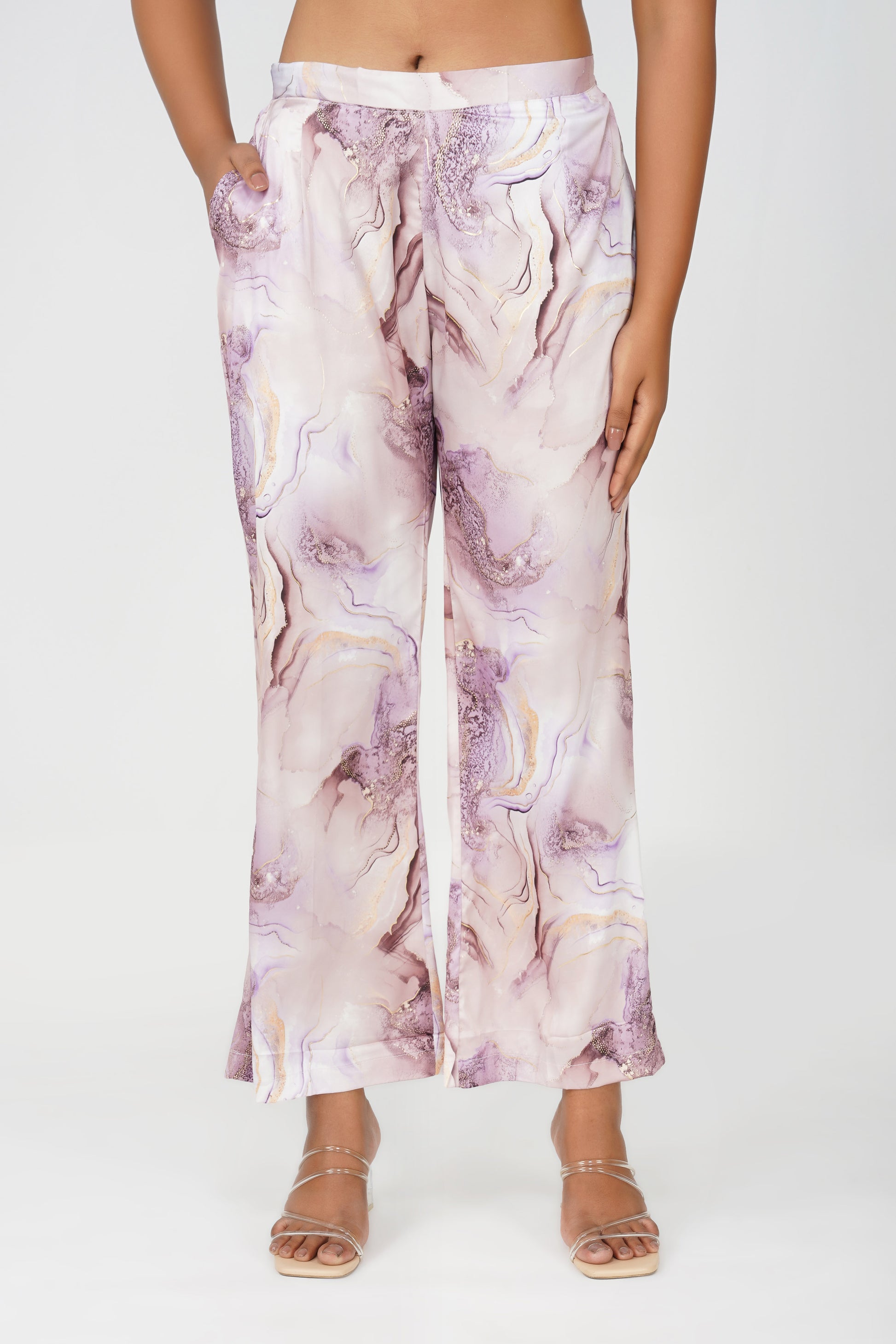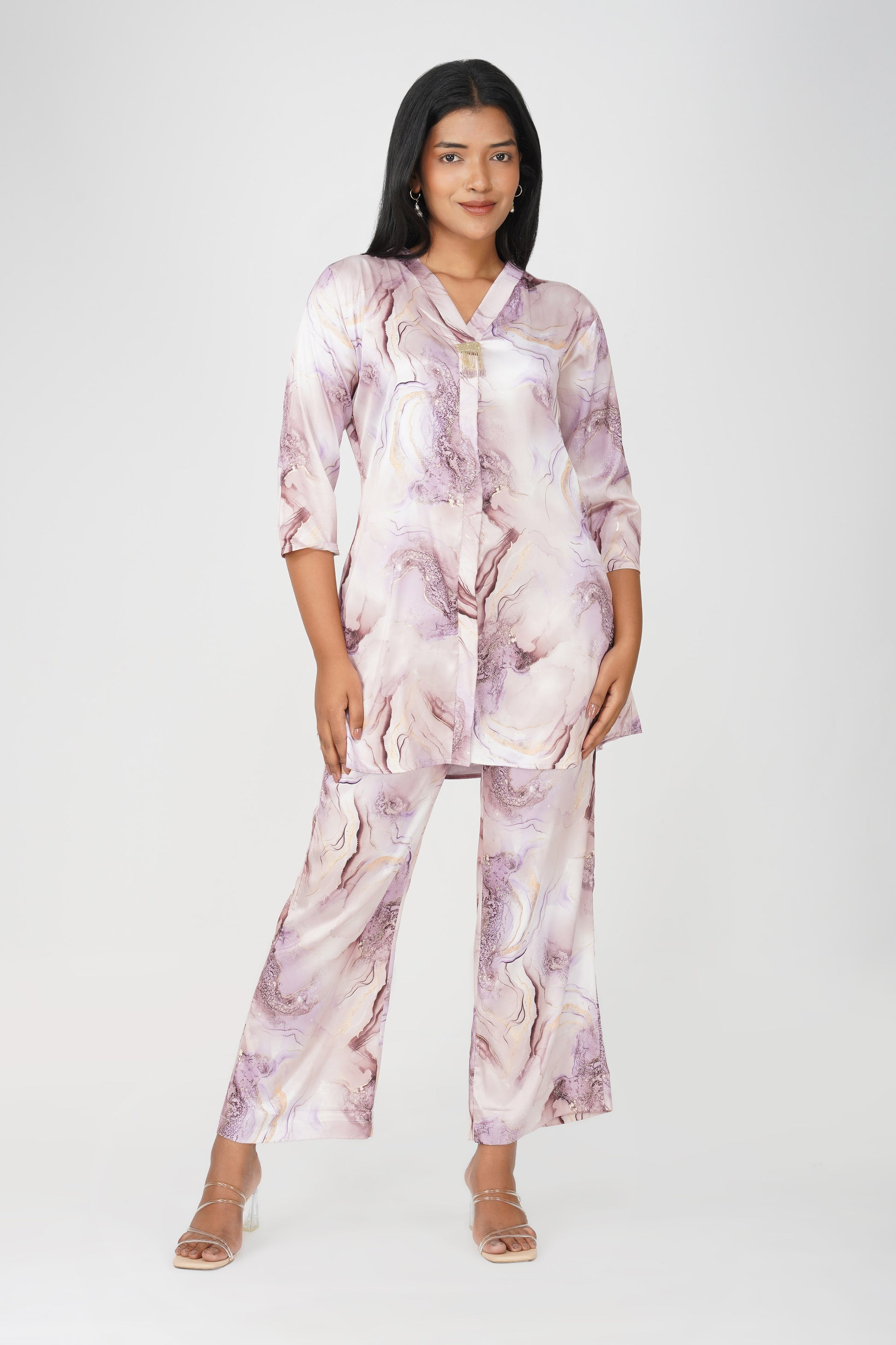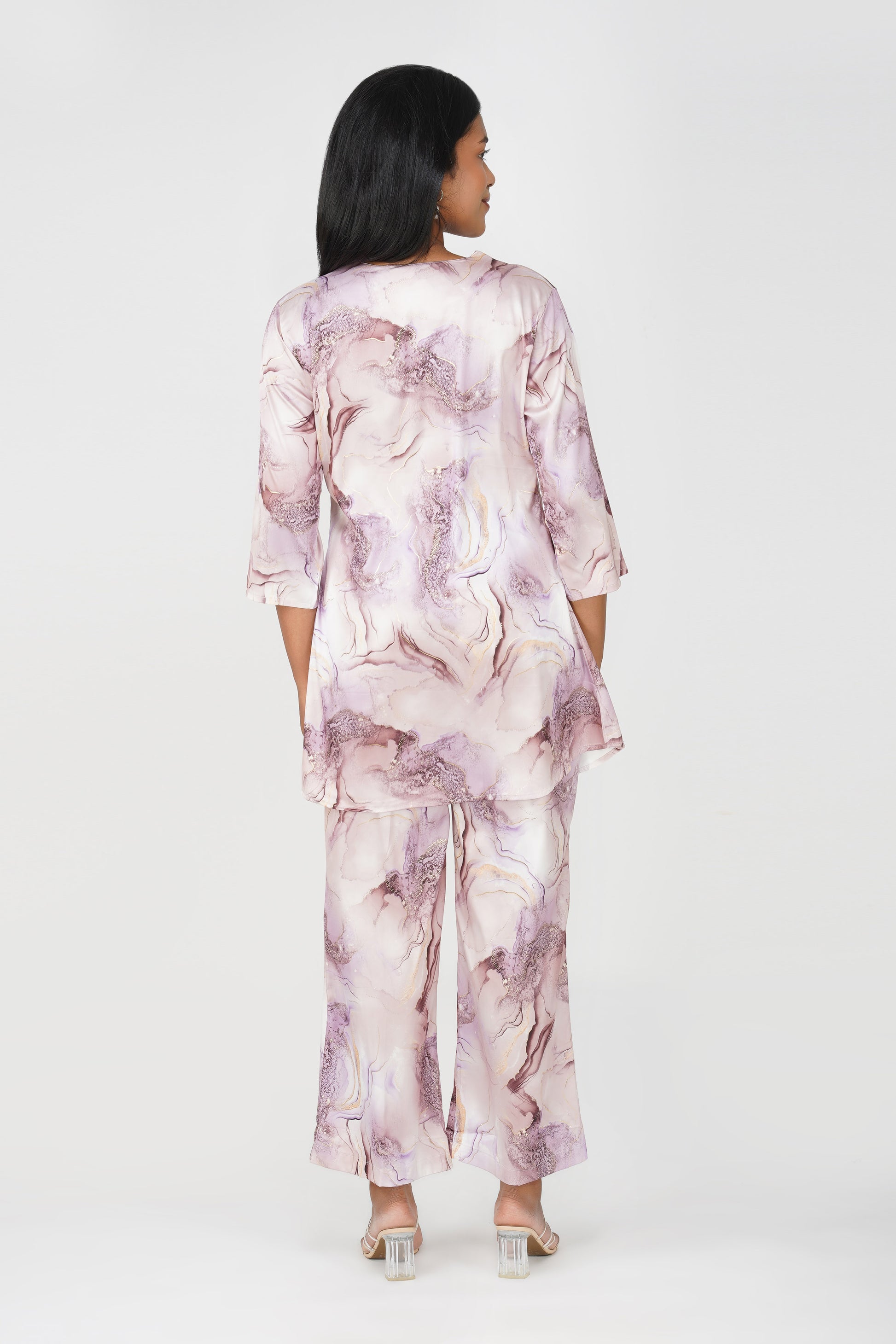 Marbling Co-ord Set – Lavender Marbling Print with Handwork Latkan