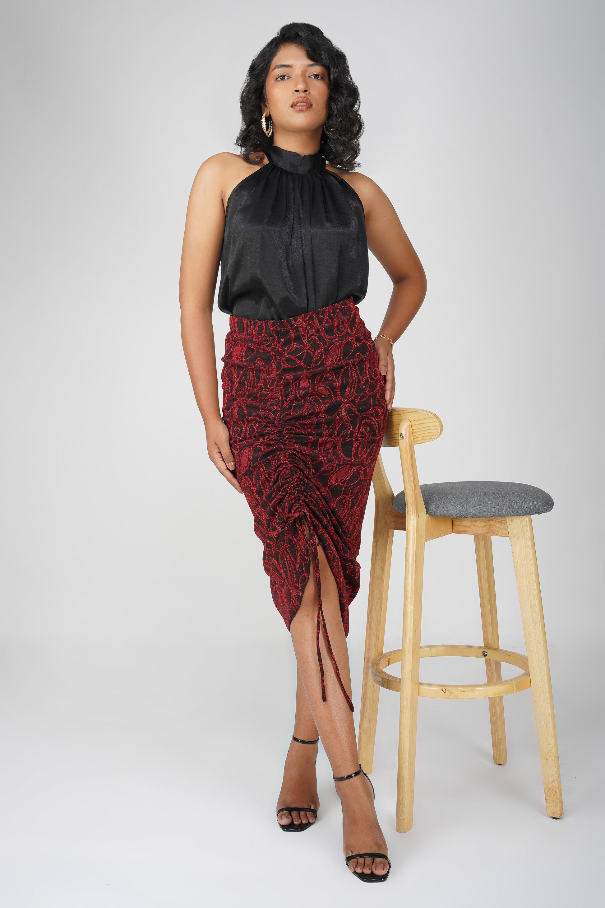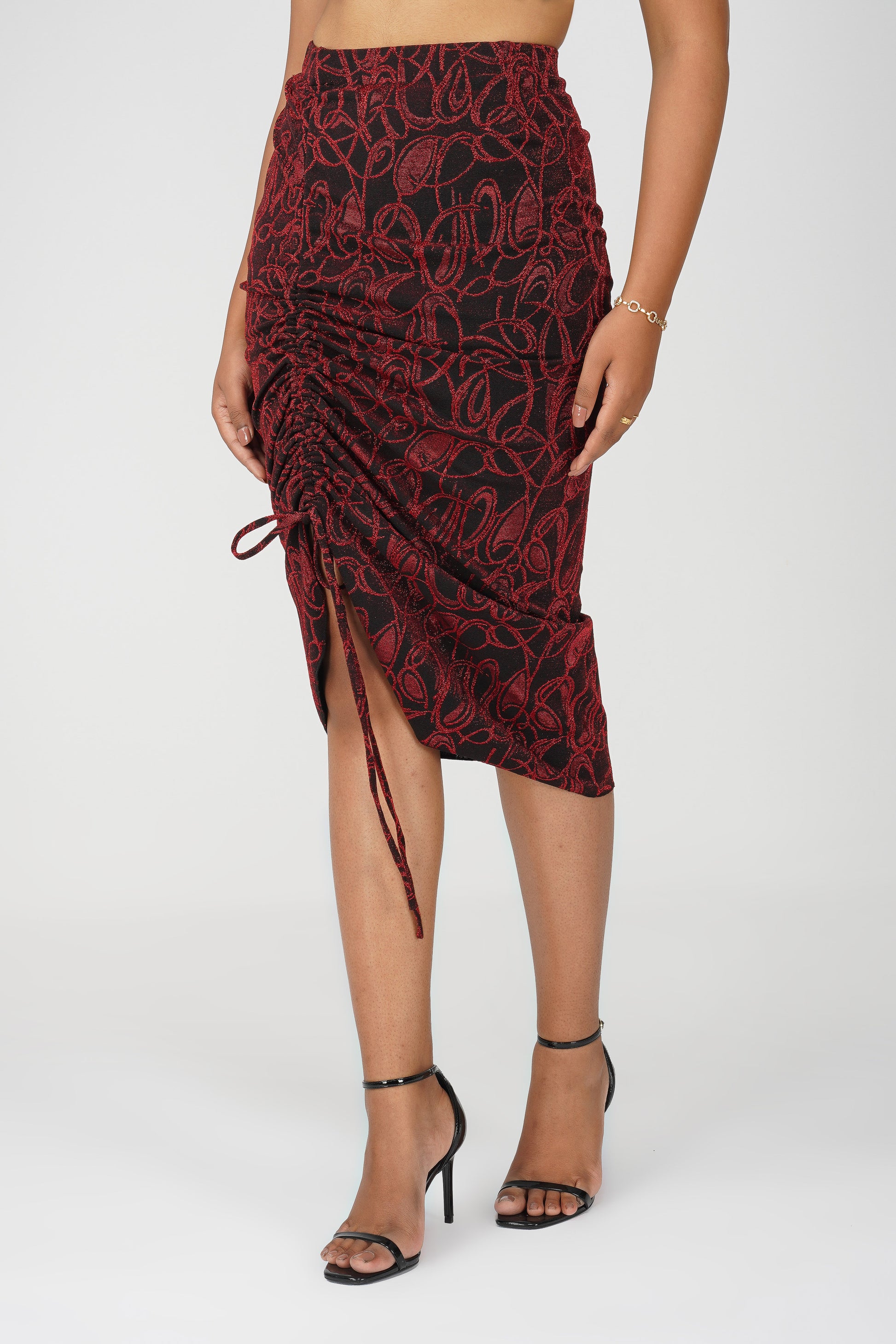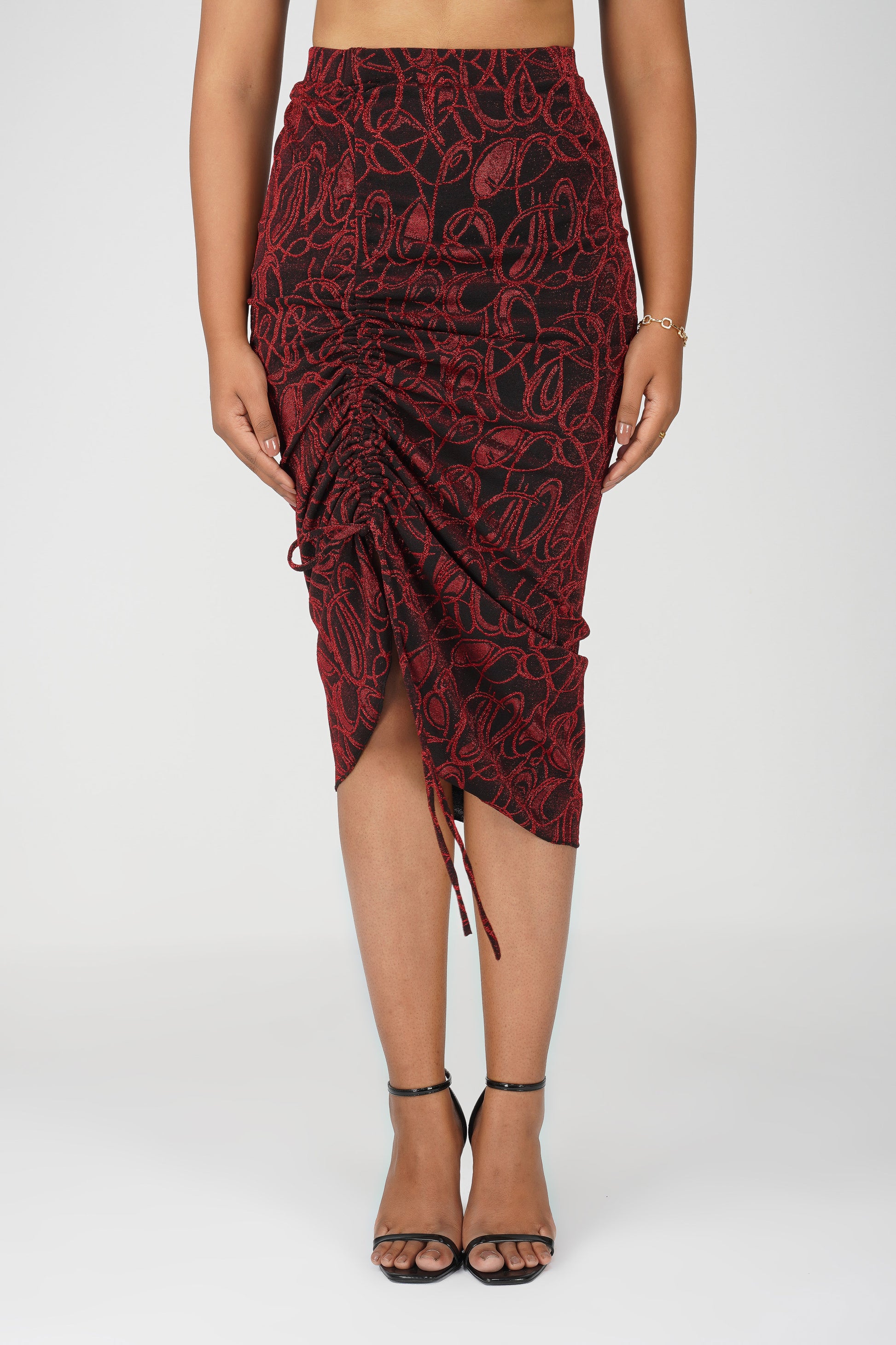 Noir Rouge Black-Red Metallic Drawstring Bodycon Skirt