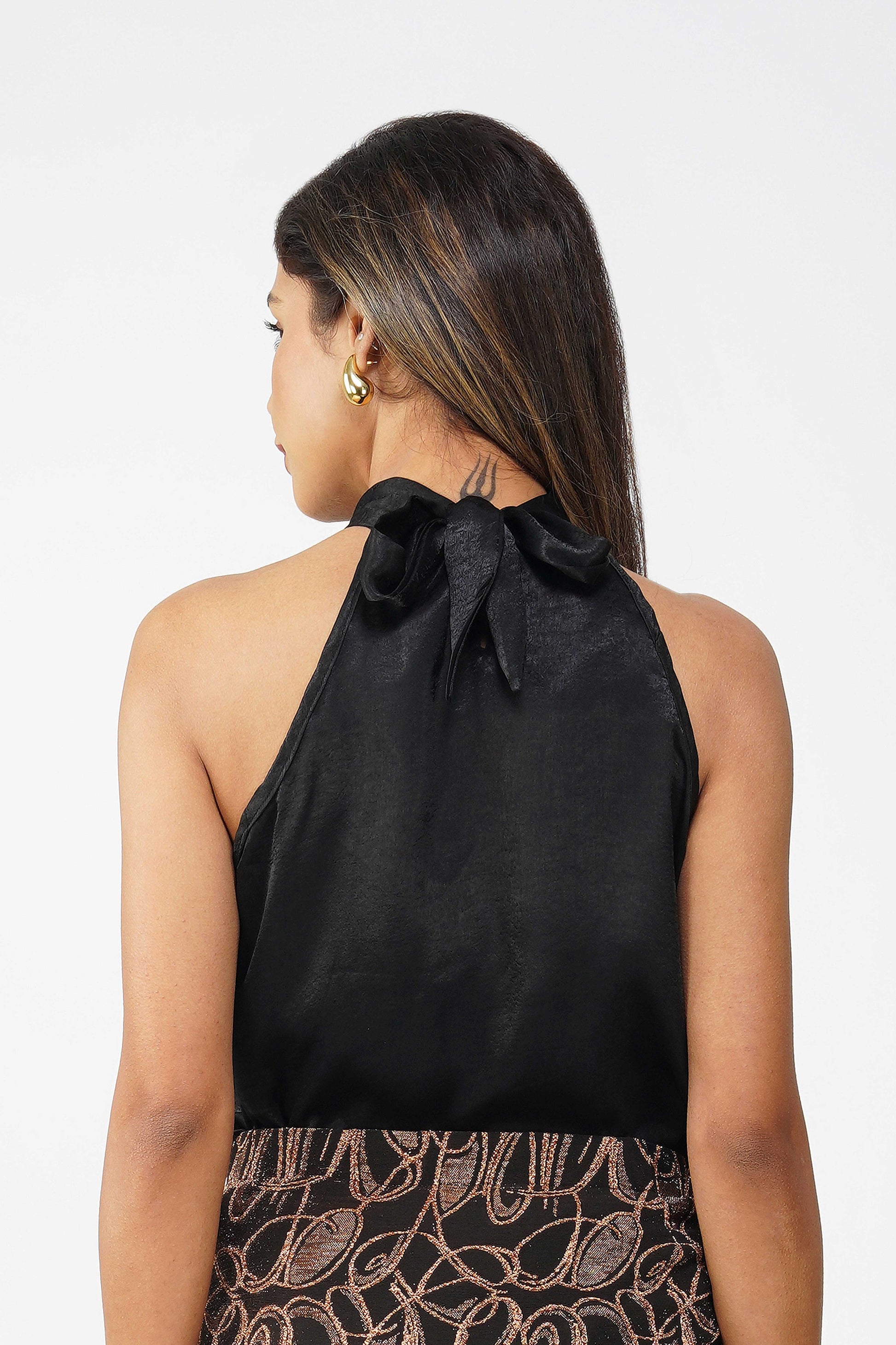 Noir Luxe Velvet Halter Top – Black Satin Look
