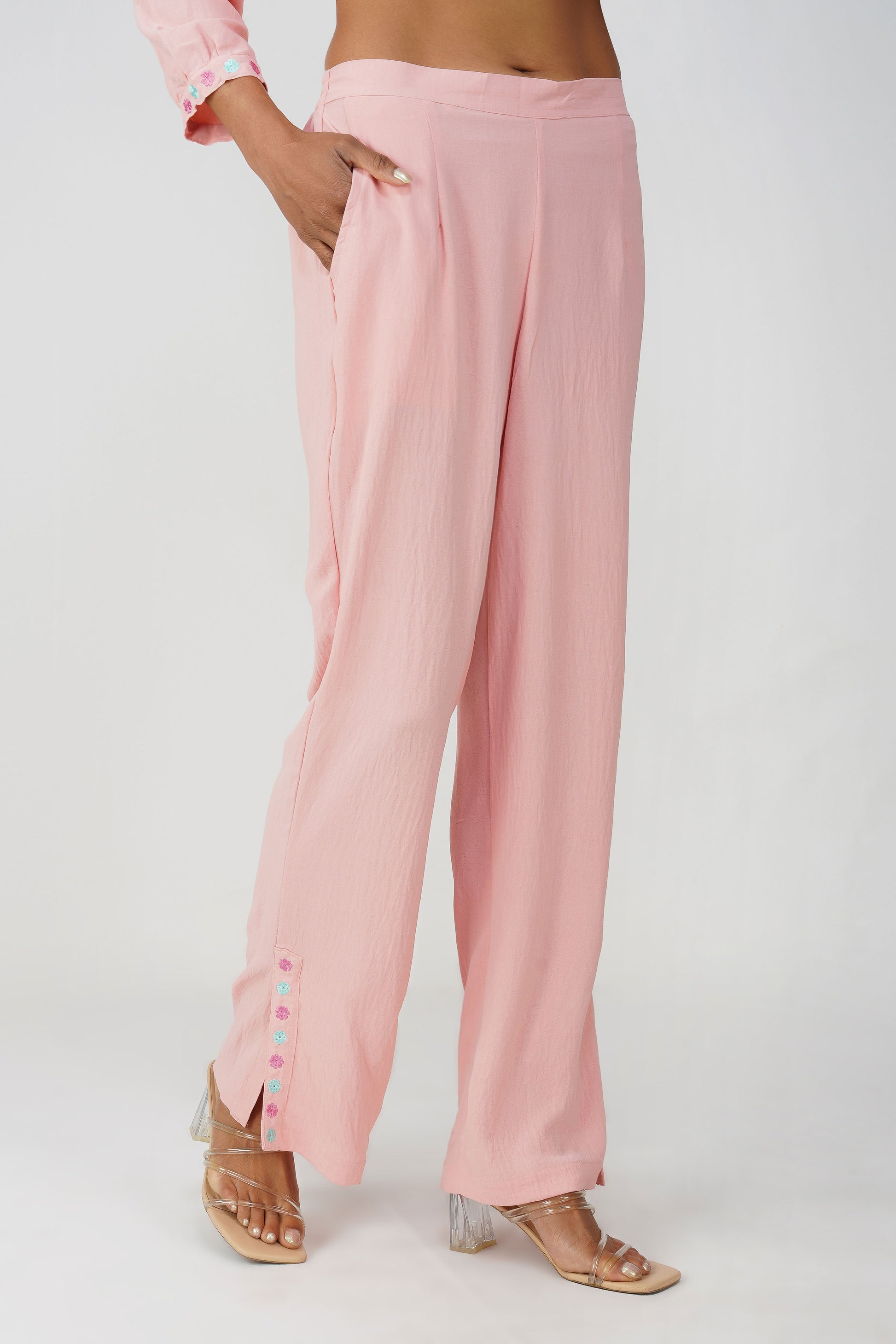 A little embroidery never hurt anybody—especially when it’s on a solid coord set like this! 🍃✨ The Phoolmati Coord Set is all about making solids interesting. Tailored in a lightweight, flowy imported fabric, the shirt features a smart collar, delicate multicolour floral embroidery on the placket and sleeve cuffs, and a hint of ruffle along the placket. The pants carry the floral embroidery along the slit hem, making this set quietly festive and totally wearable.