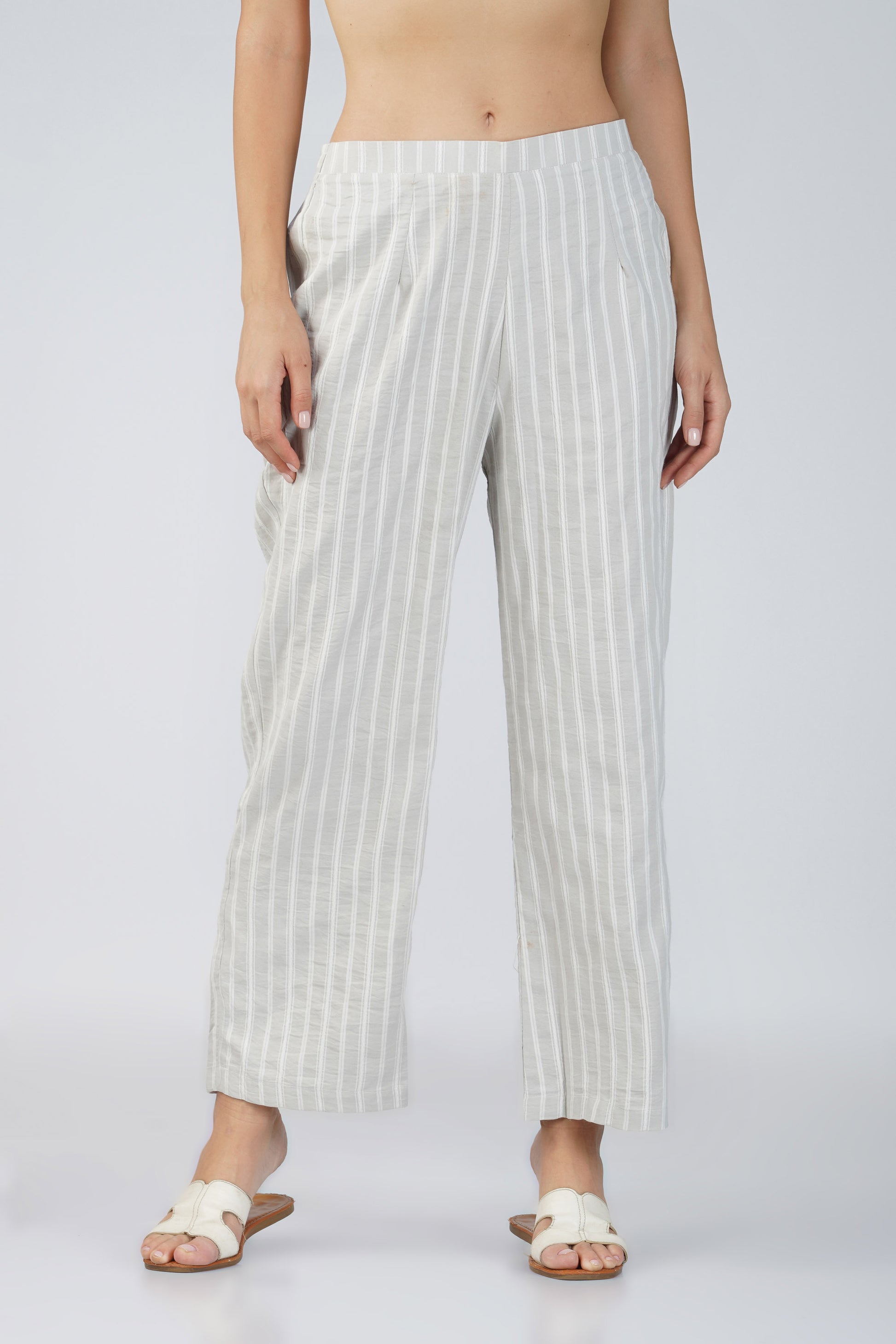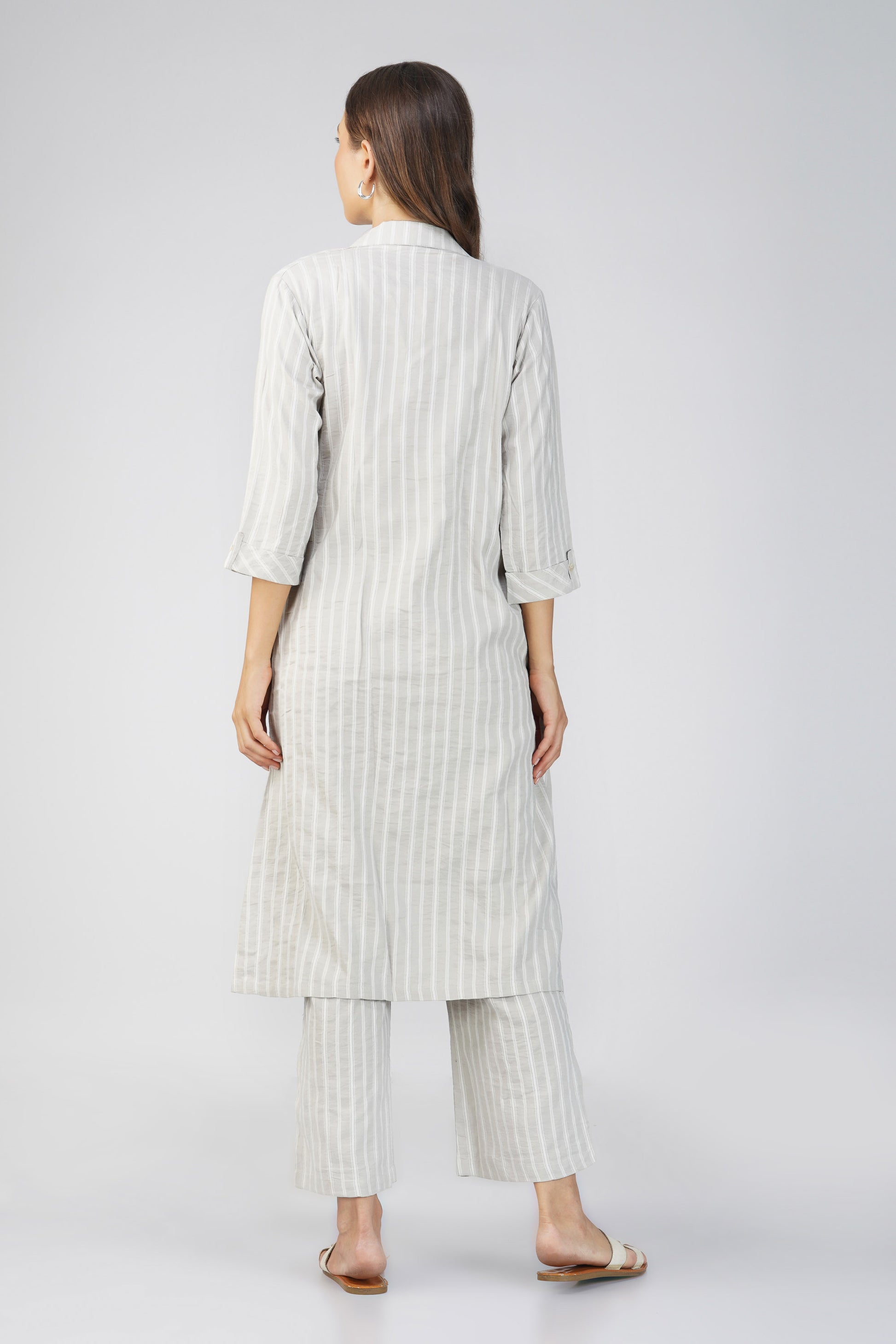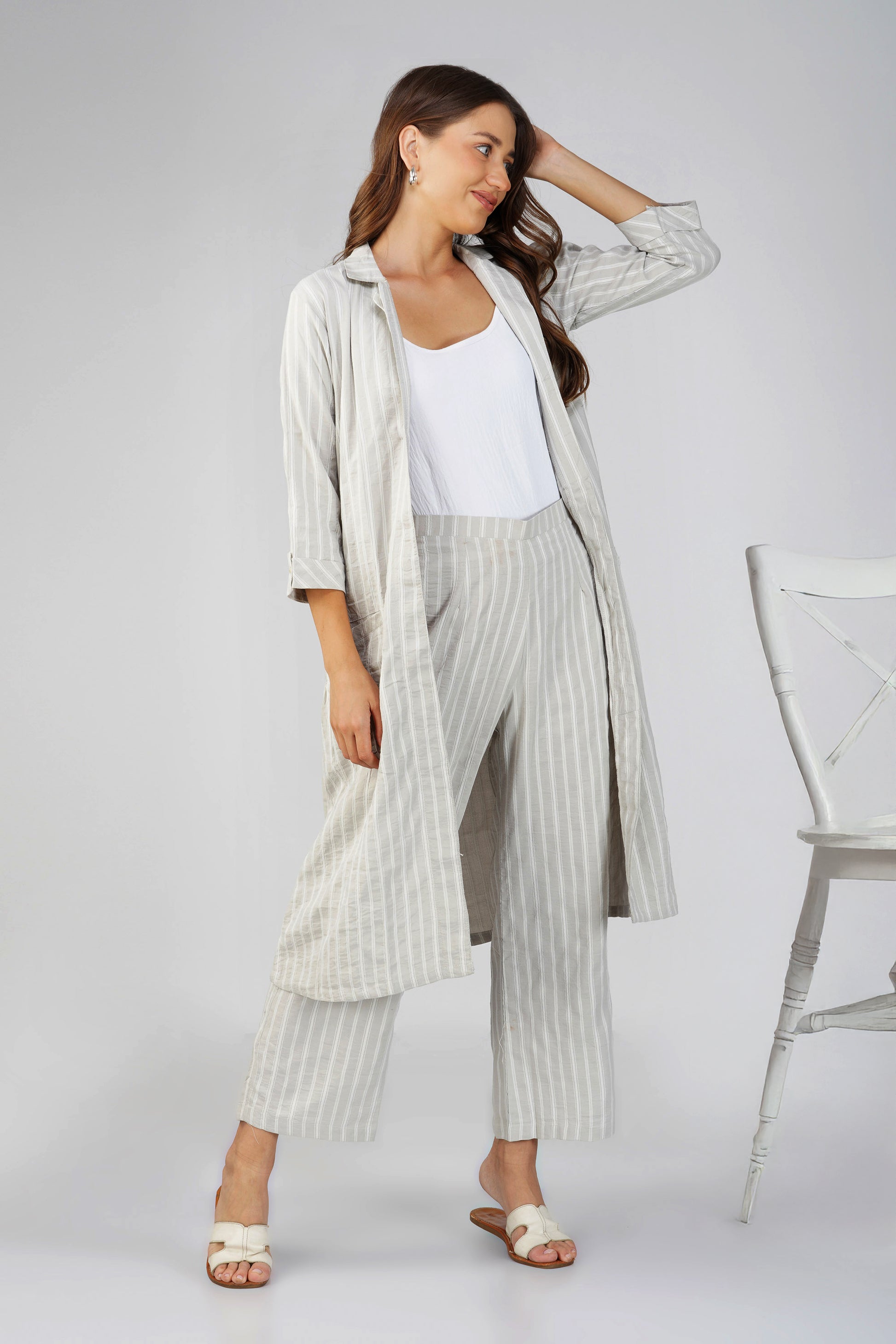 Raahi Light Grey Jacket Co-ord Set – 3-Piece with Spaghetti Top & Striped Flared Pants