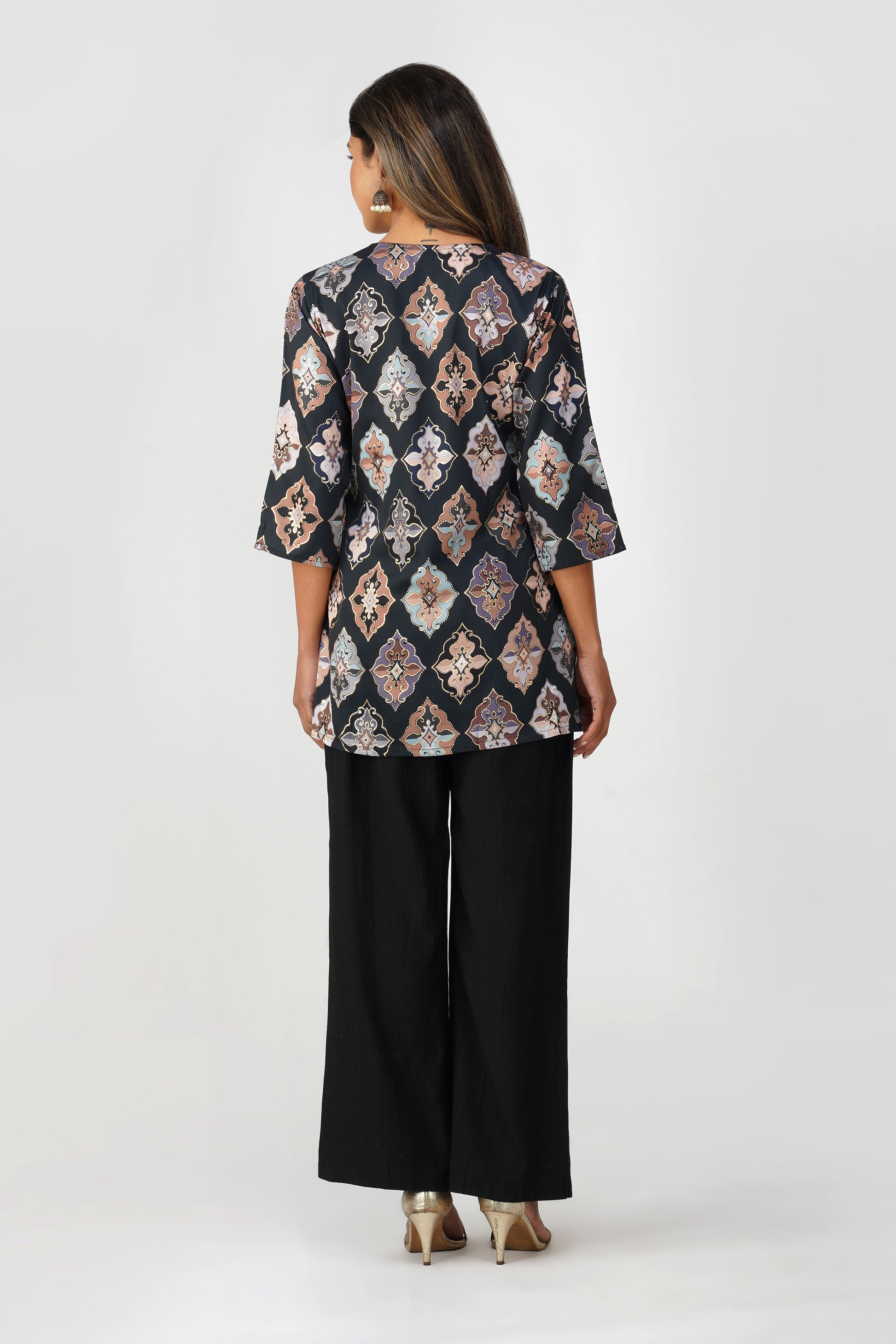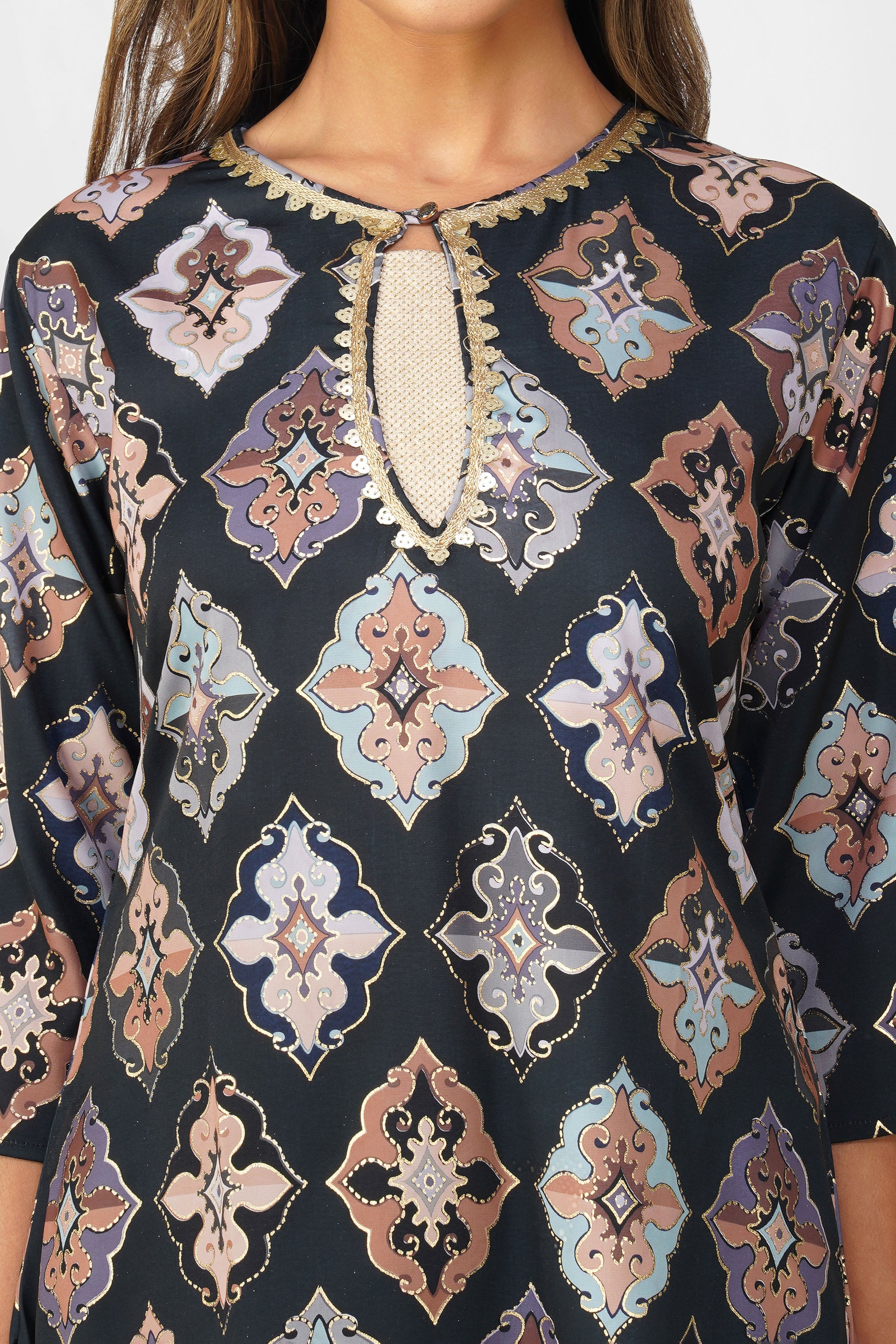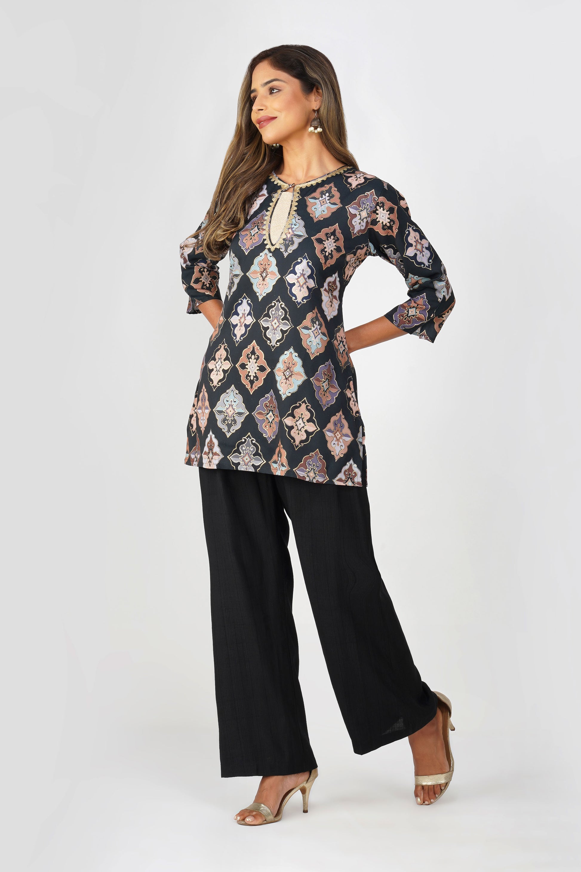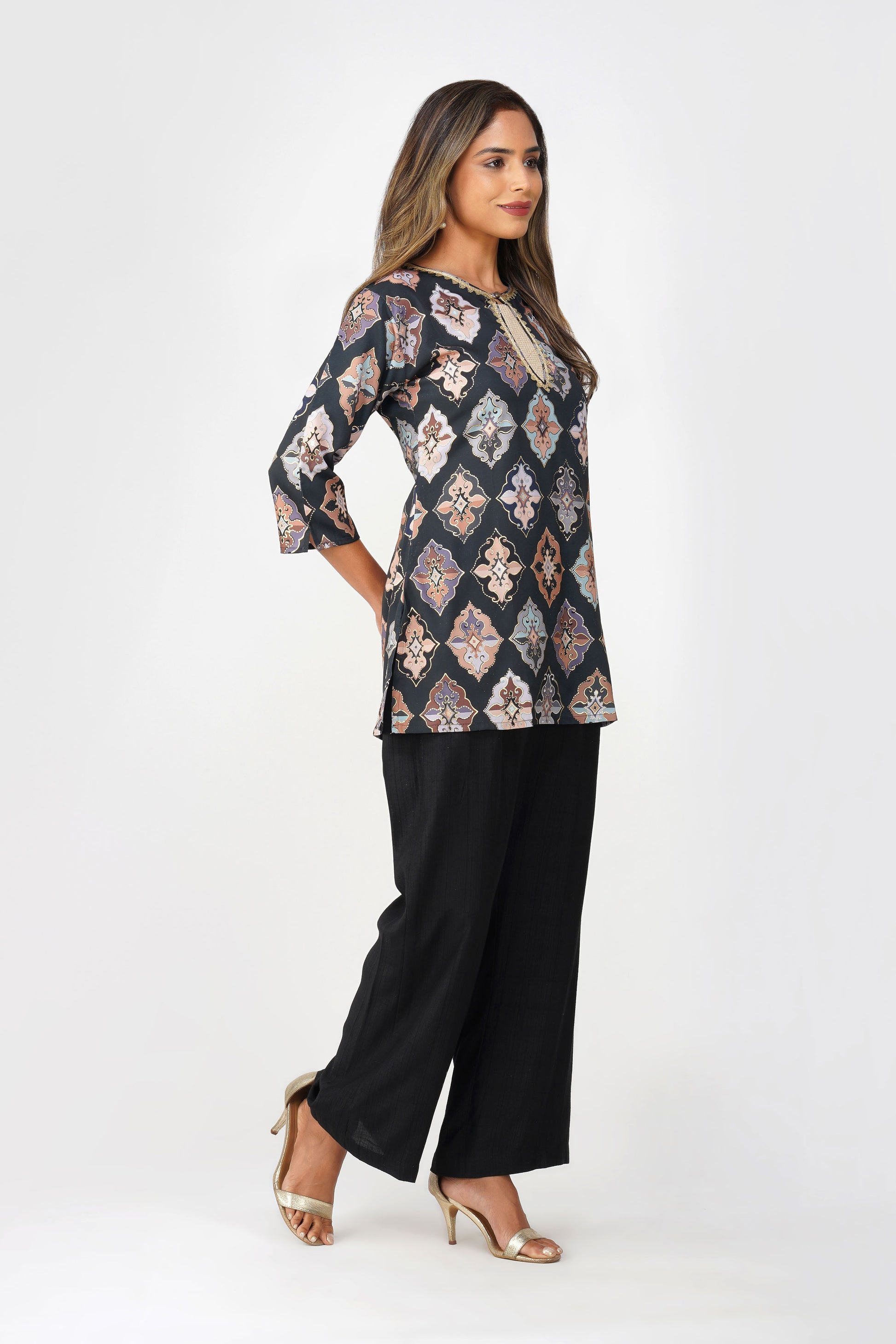 Color: Black Multicolour Print Tunic with Black Bottoms 🖤🎨