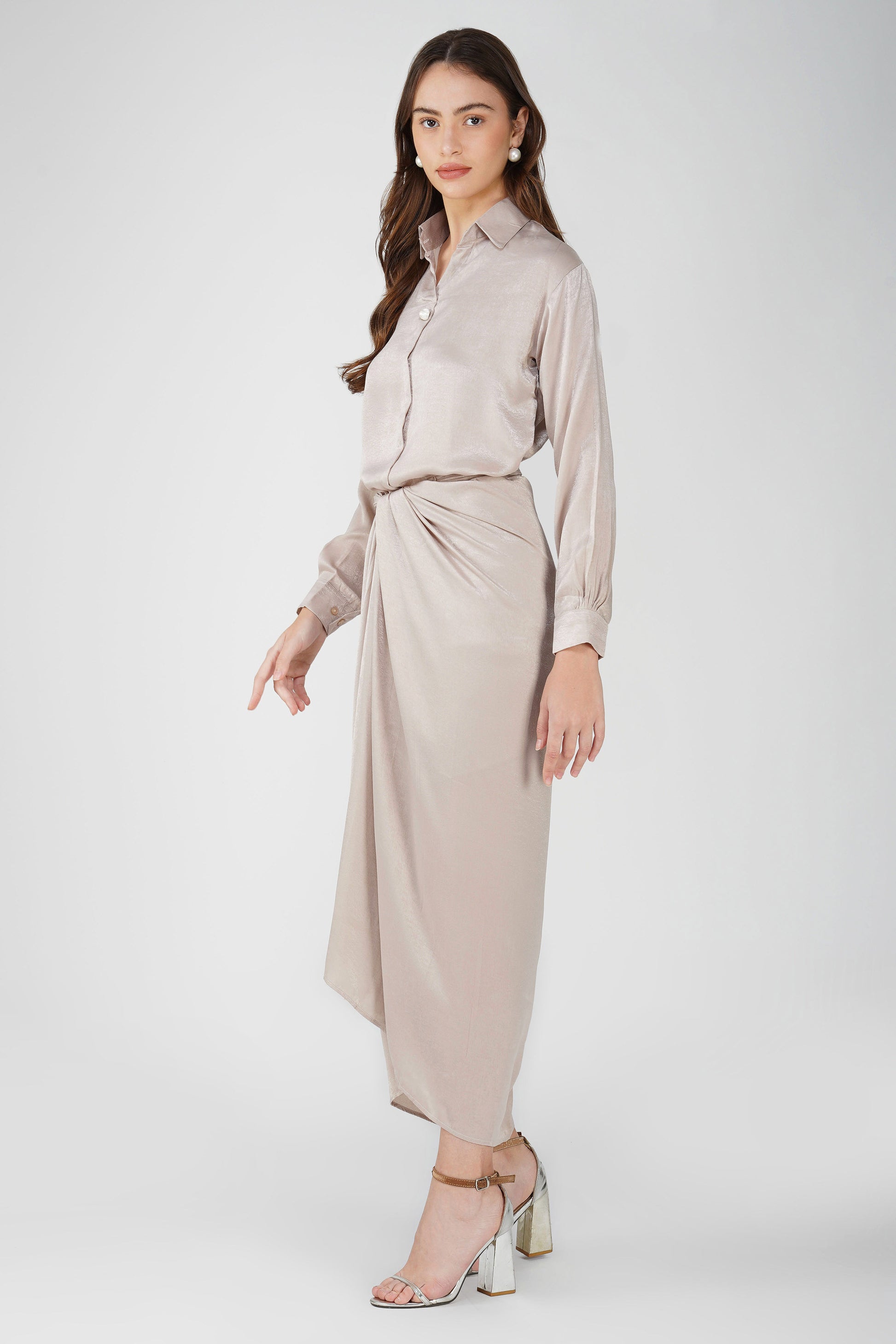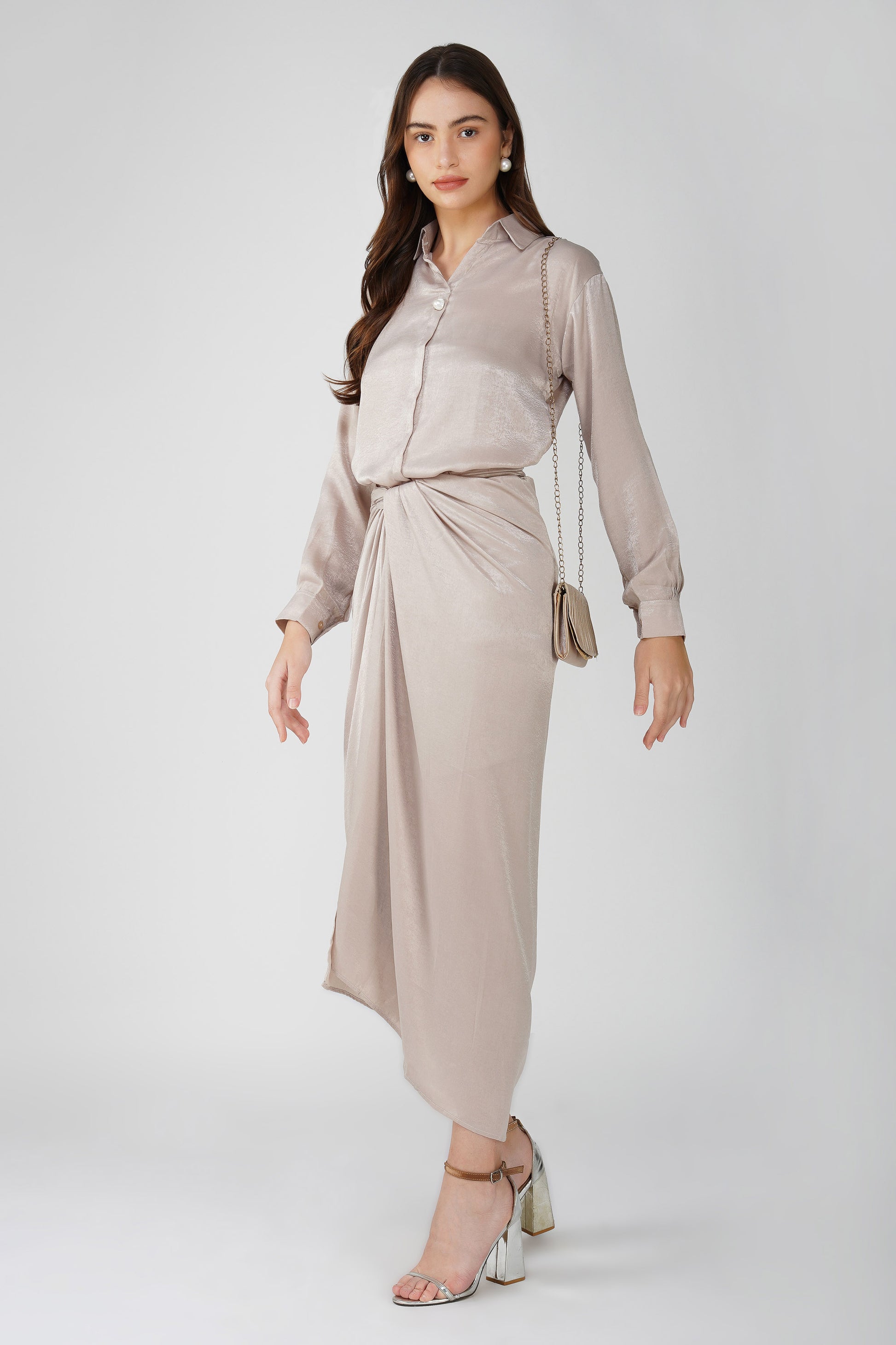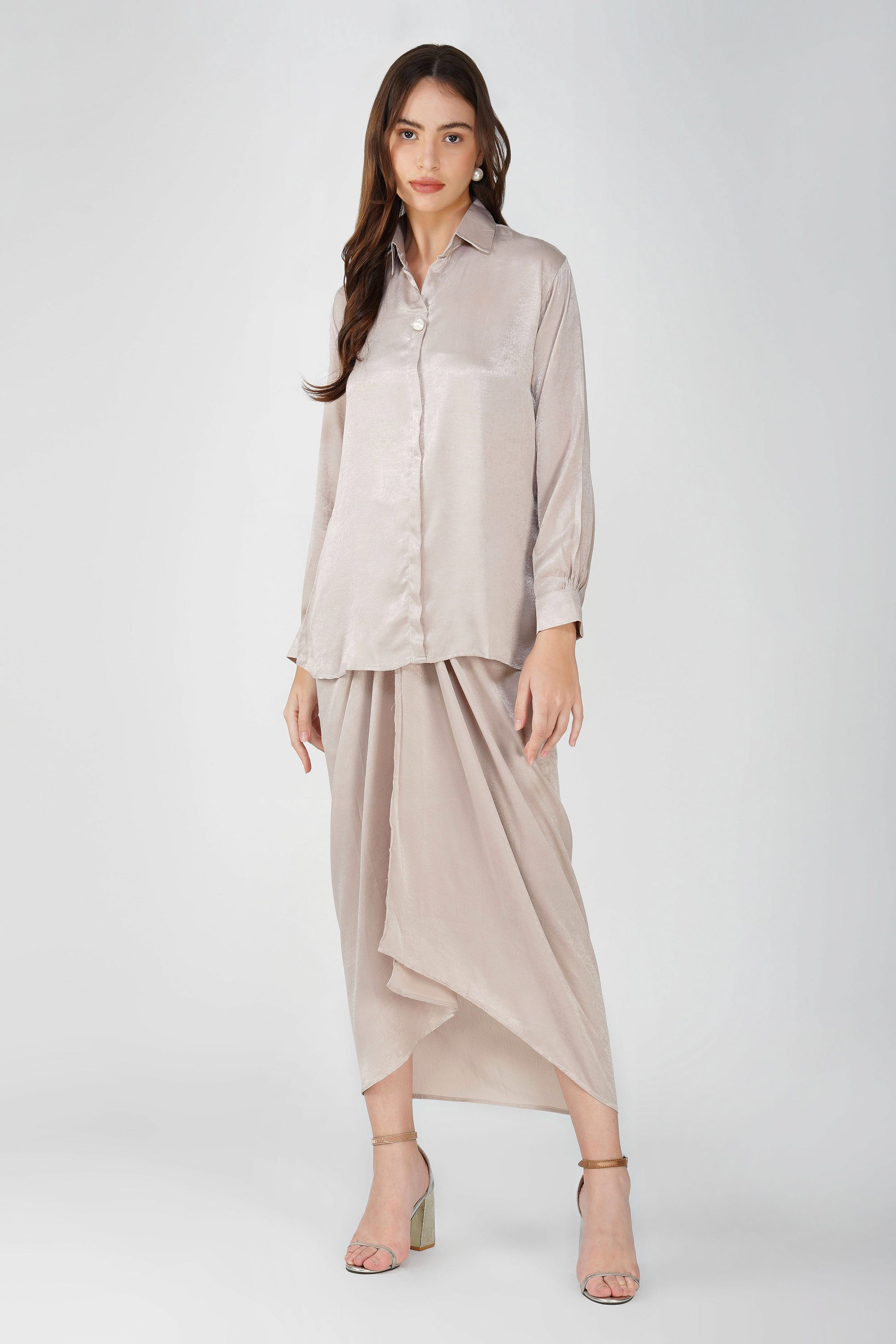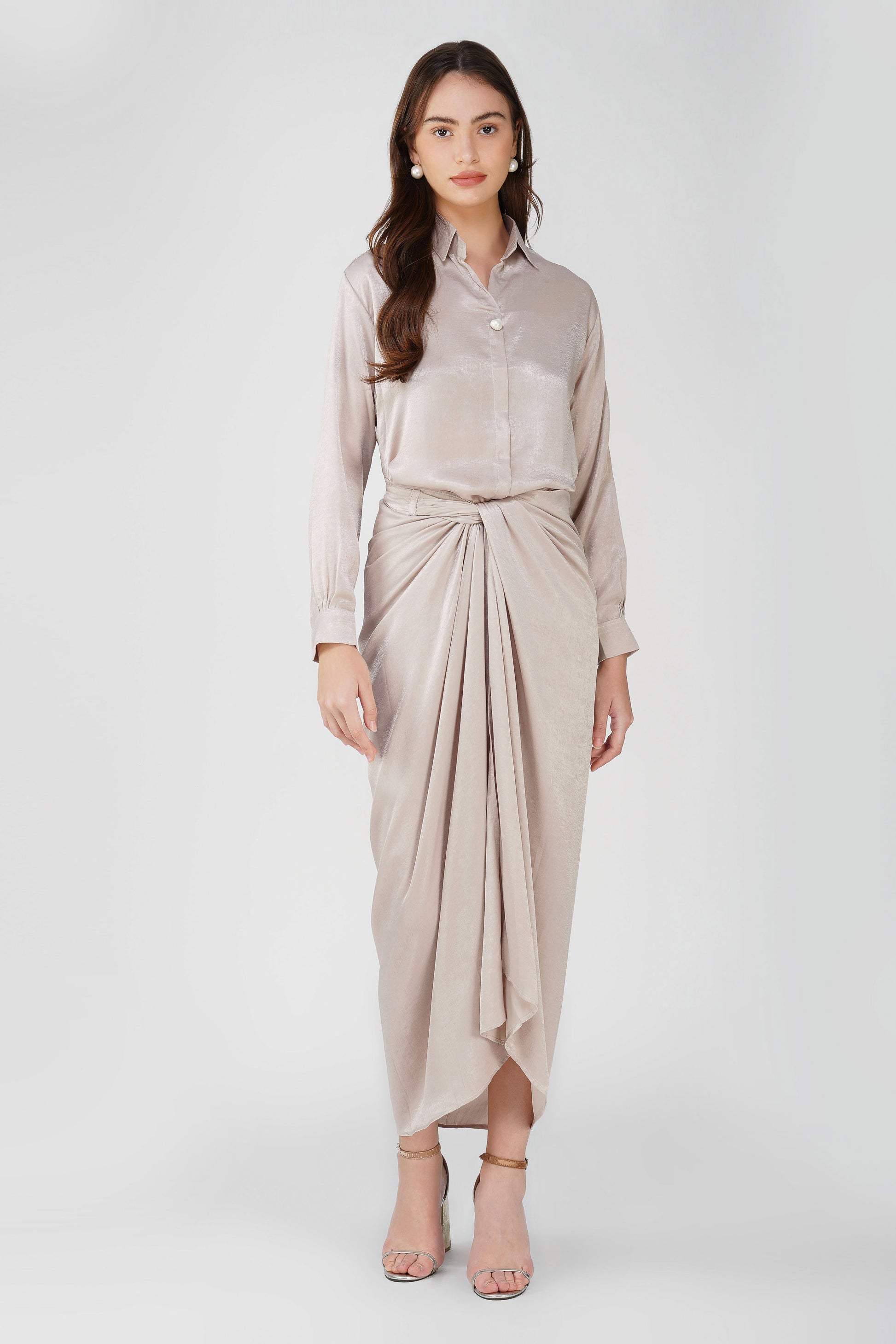 Pattern – Solid Shirt with Pearl Detail | Draped Skirt with Lining