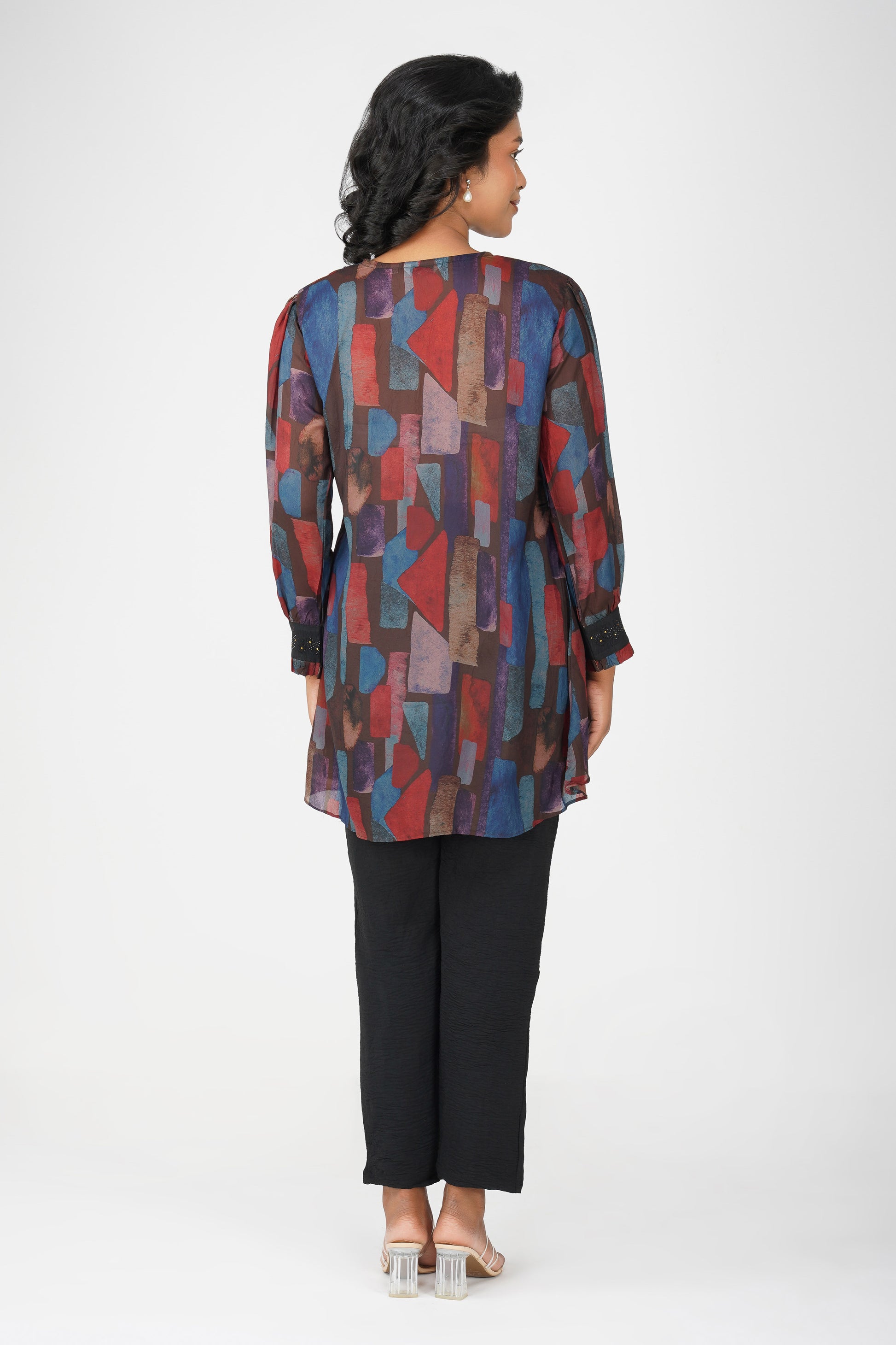 Coffee Multicolour Swarovski Tunic Set โ Printed Festive Co-ord with Pants